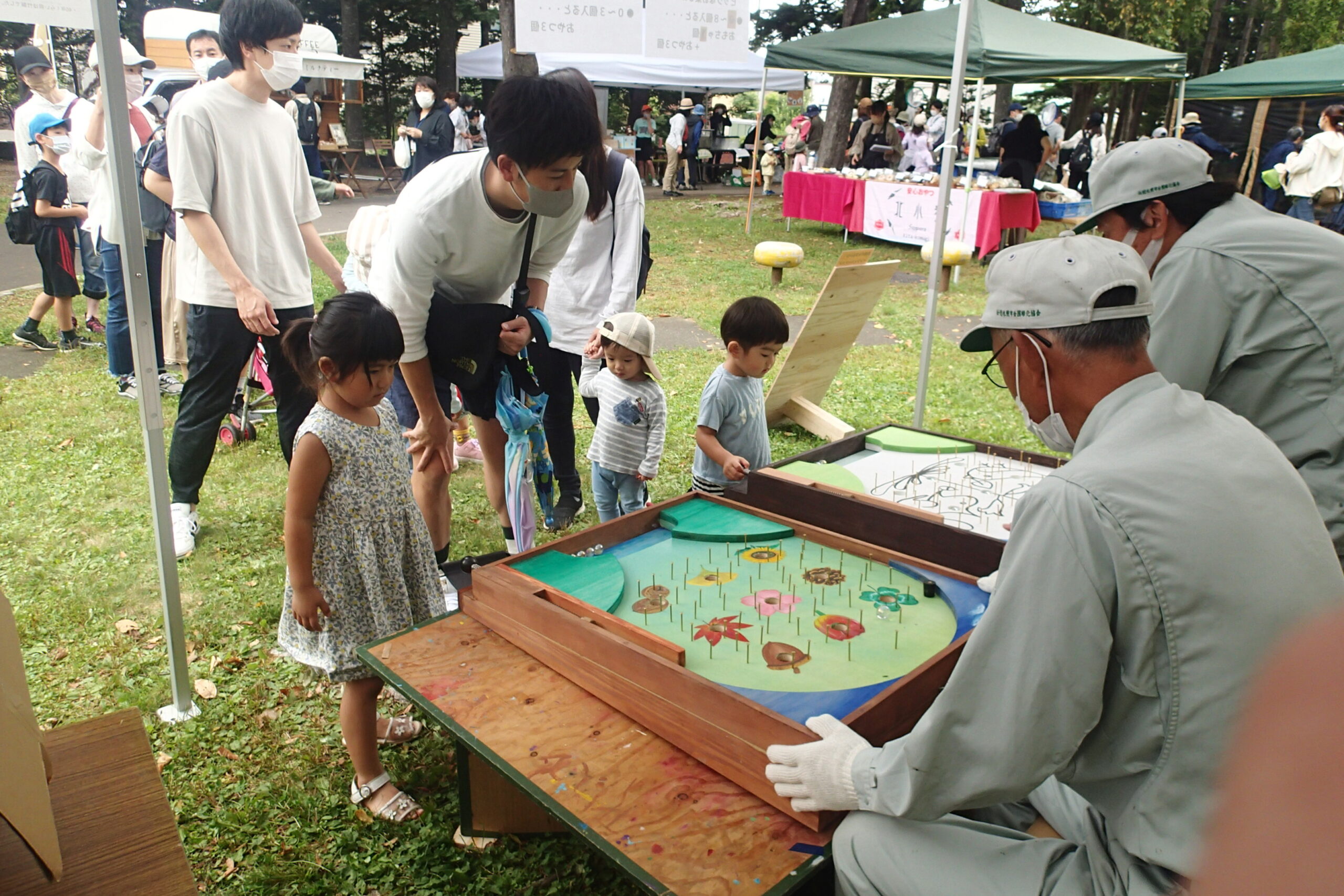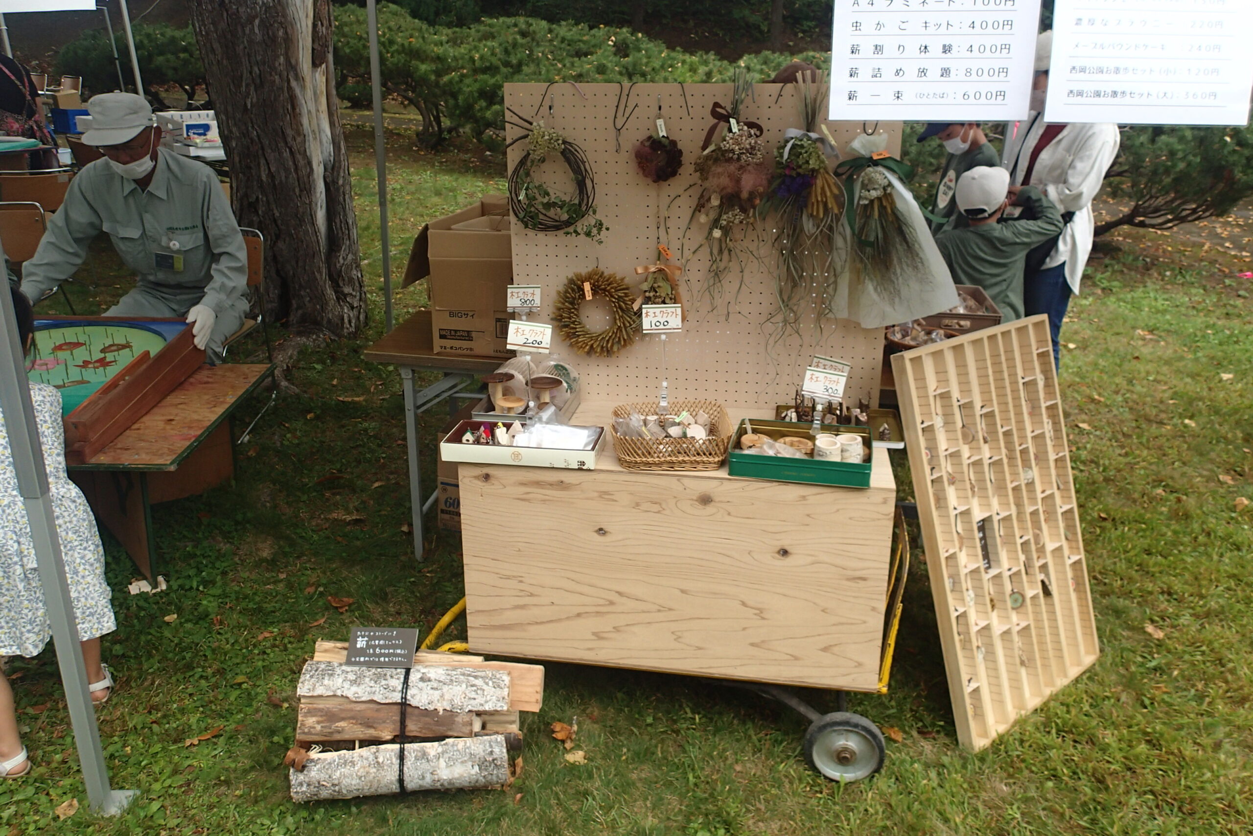 西岡公園のボランティア「森の工作」の皆さんによる工作を楽しめるコーナーがありましたよ。