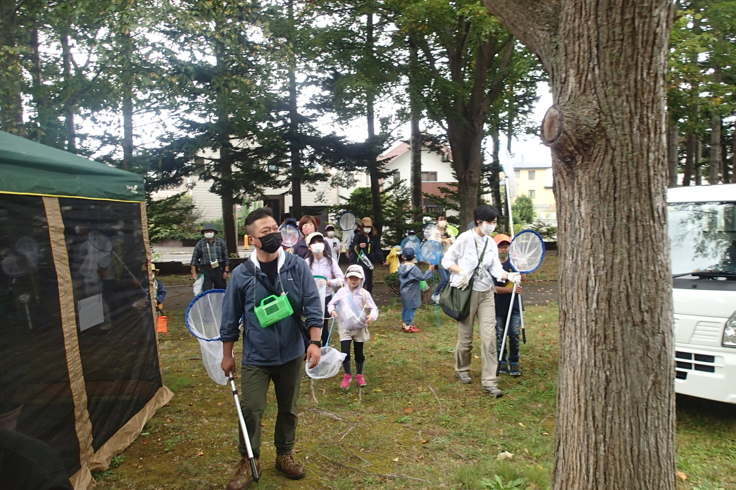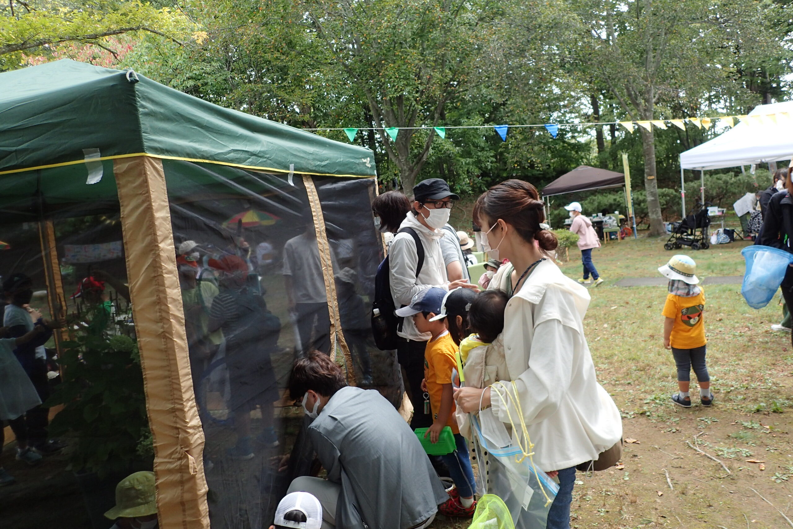 「はじめてのムシさんぽ」では「おさんぽガイド」のボランティアの皆さんの協力で