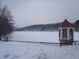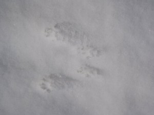 今朝はうっすらと雪の積がった西岡公園。動物の足跡がくっきりと残っていました。チラチラと雪が降る曇りの中を歩いて見ました。