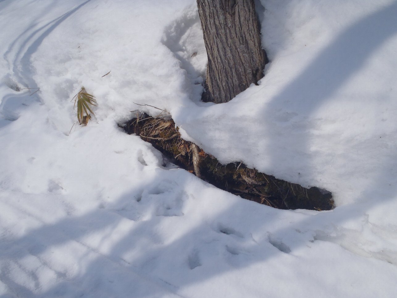 園内を歩いているとあちこちで上の写真の様なエゾリスの足跡が見られました。場所によっては2~3匹のエゾリスが歩き回っているような場所もありました。