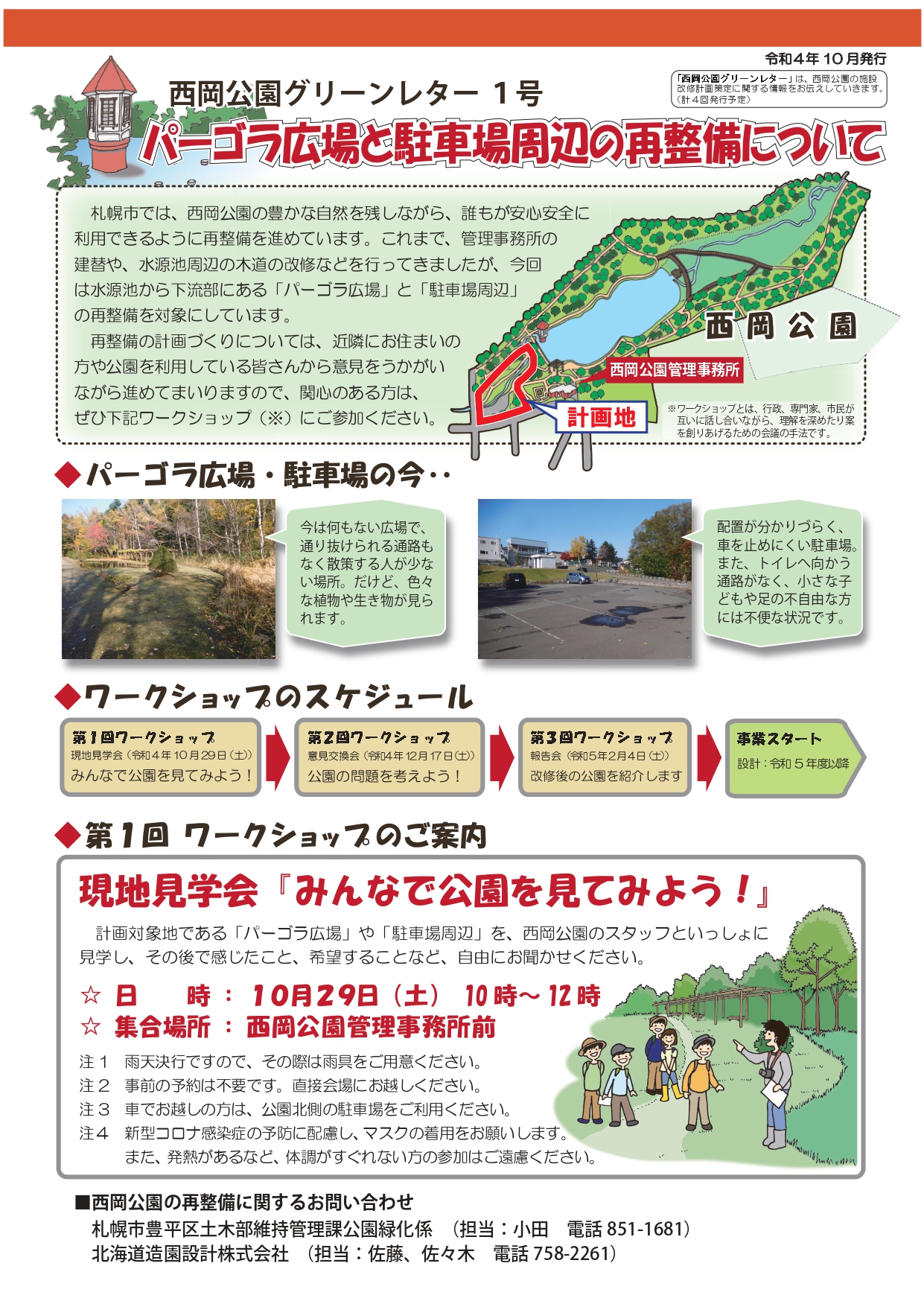 西岡公園を安心安全でより良い公園として行くために、まずは工事予定エリアの見学会を行いたいと思います。