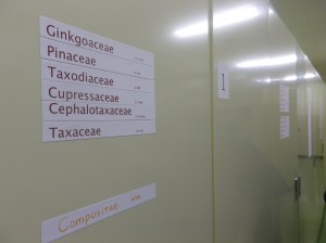 さらに棚の中から科の場所を探し、そして種まで辿って、標本を納めていきます。