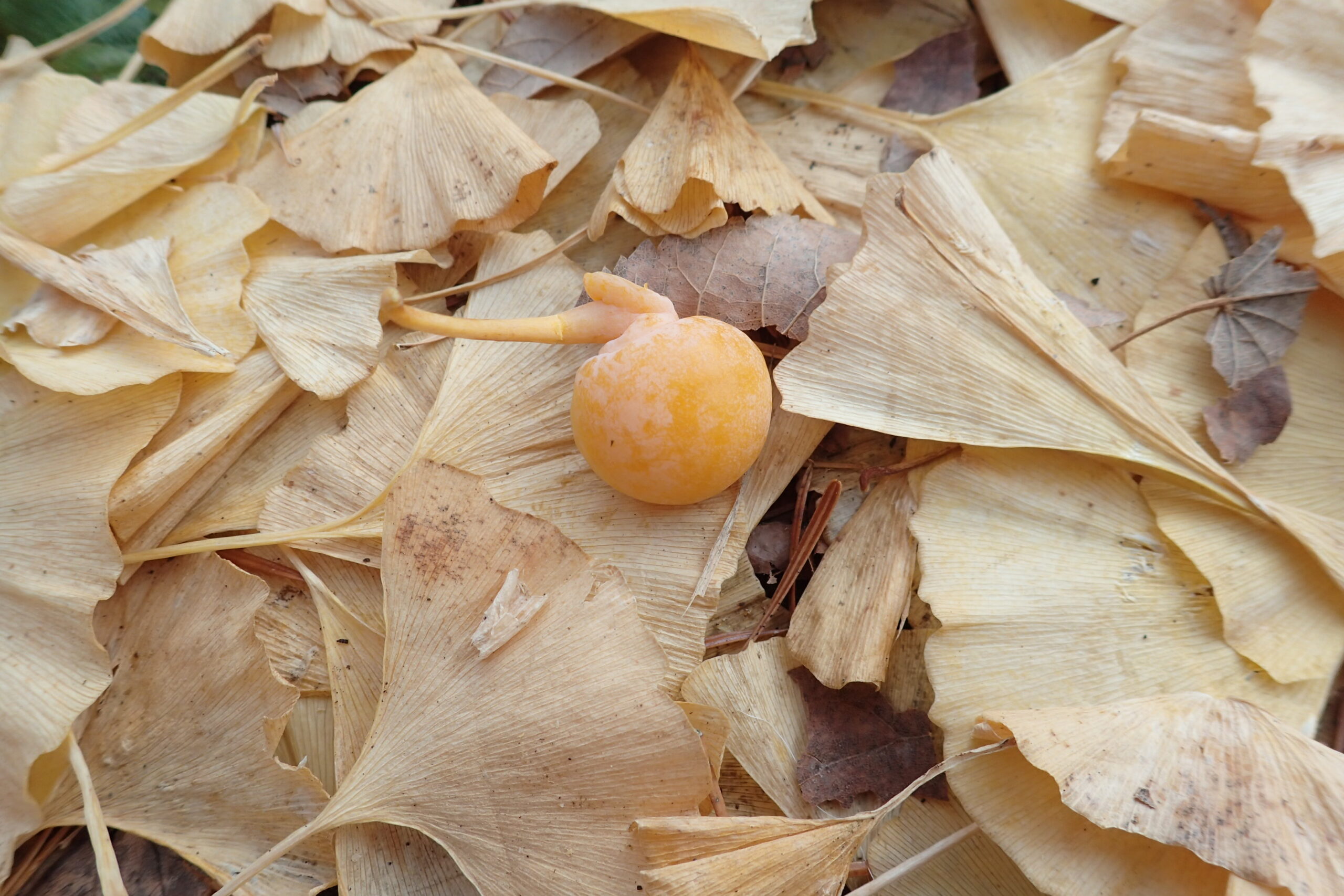 イチョウには雄木と雌木があり、雌木の下に落ちている果実が銀杏です。