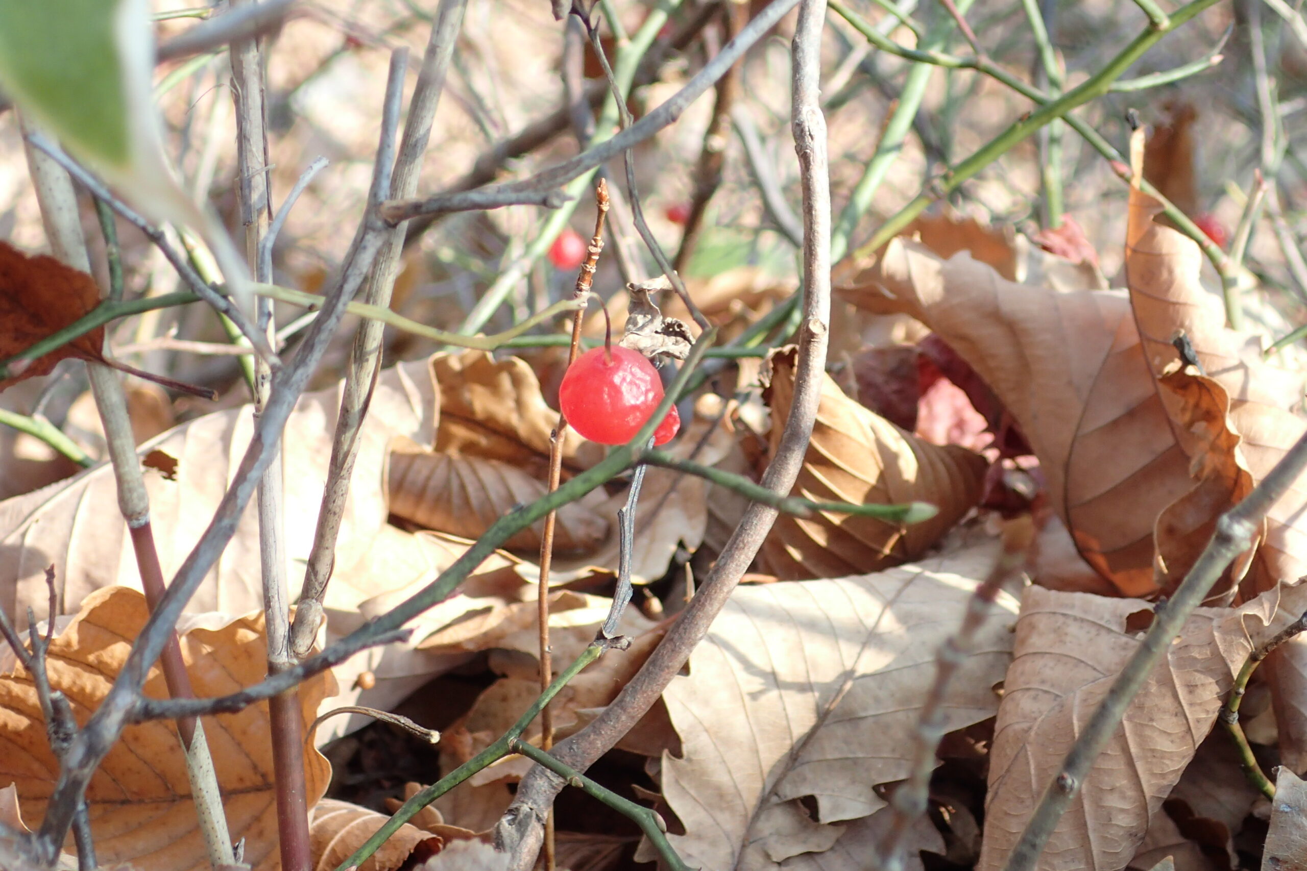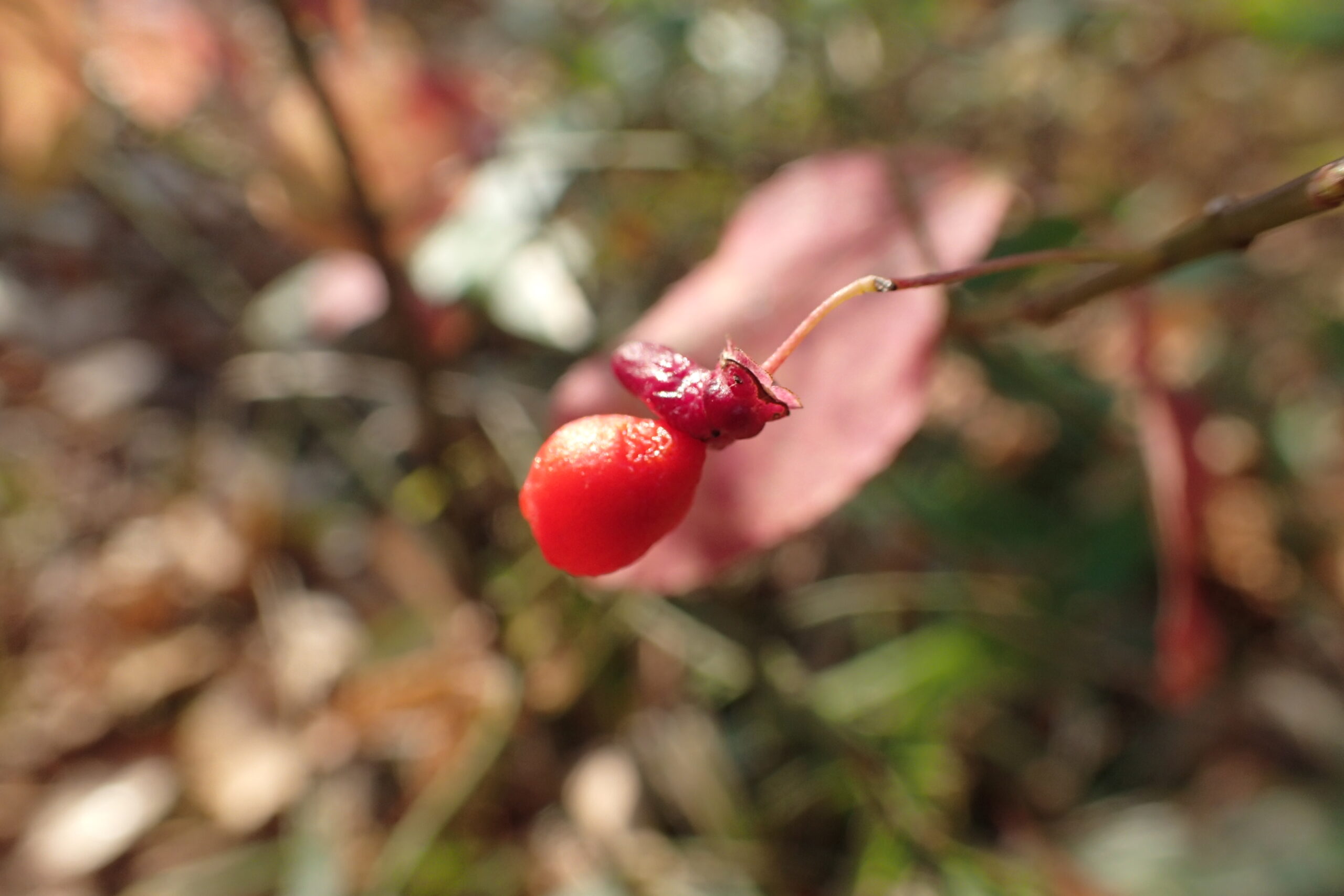 園内は紅葉がほぼ終わって落ち着いた色彩になってきました。そうなると鮮やかな果実が目に付きます。