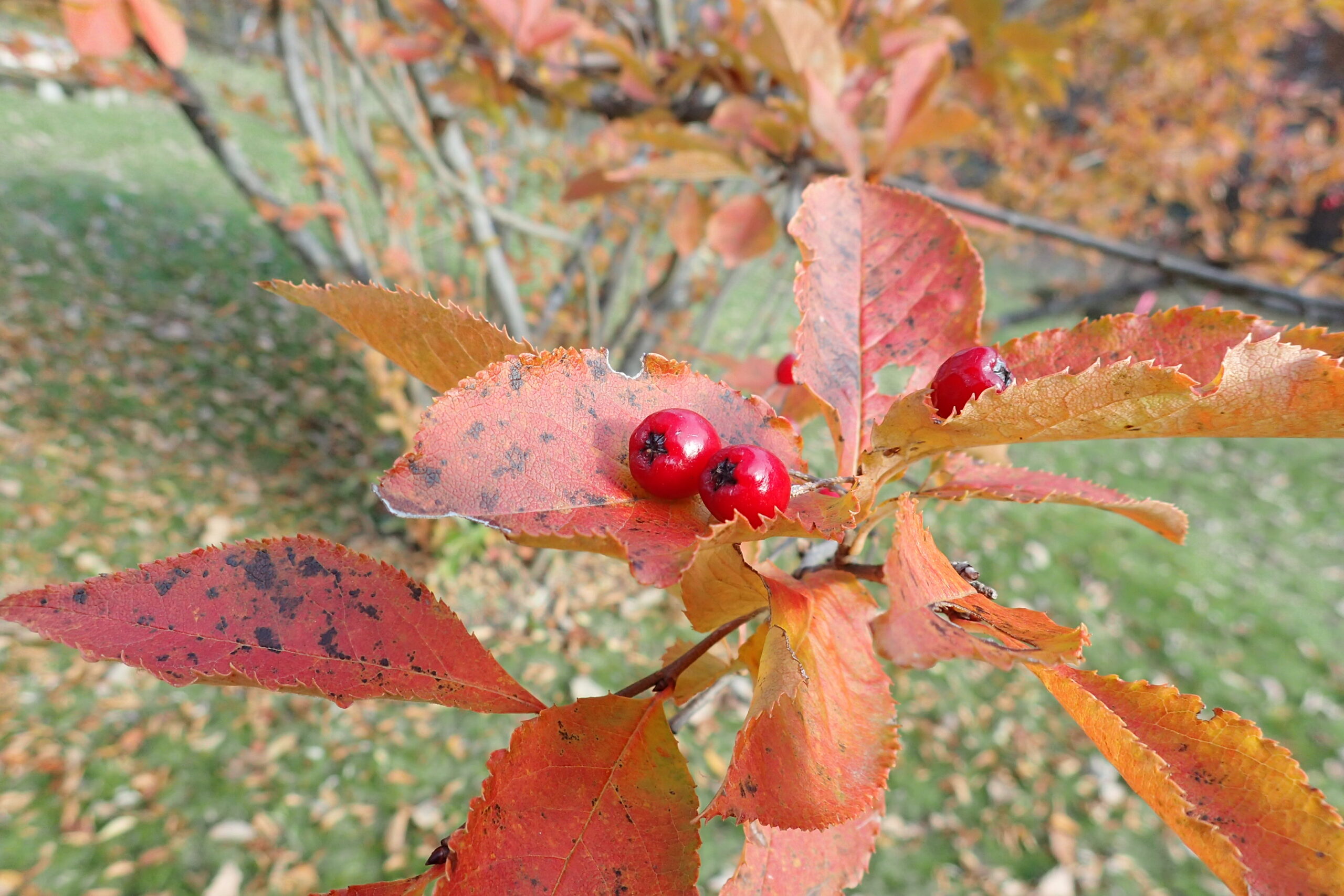 ミヤマガマズミの紅葉と果実のコントラストが鮮やかです。