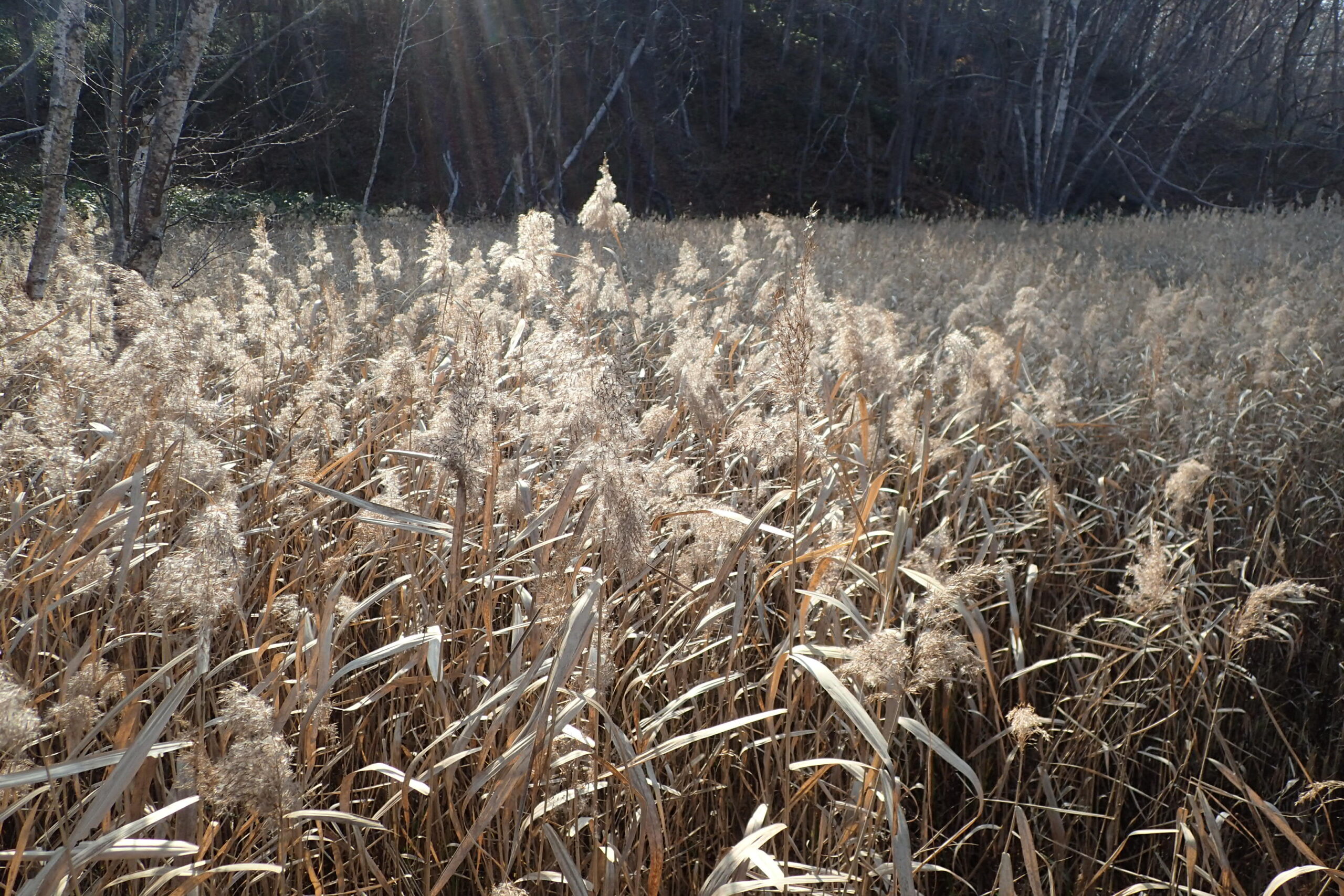 ヨシも穂がフワフワです。湿原は枯れたヨシの淡い色合いが優しいです。風が吹くとサワサワと鳴っていましたよ。