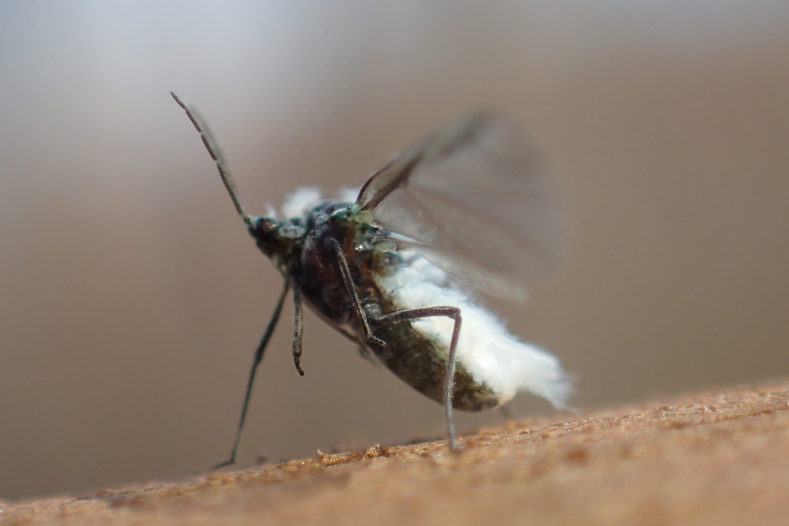すぐに飛び立っていきましたよ。雪虫でした。