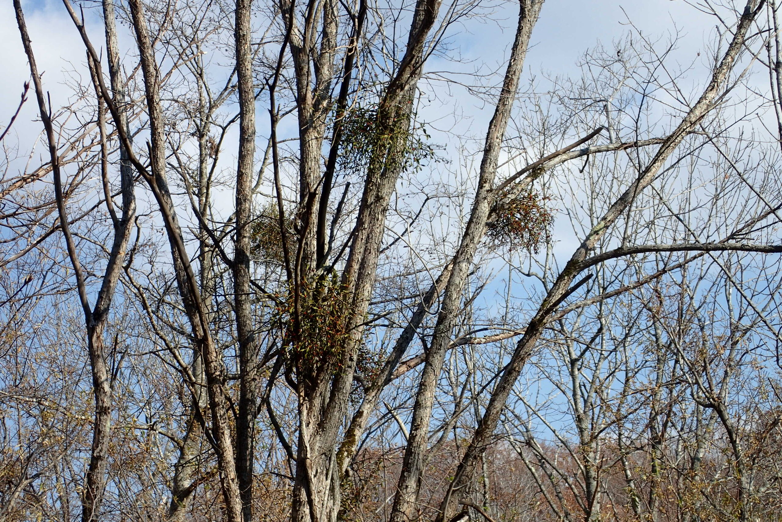 ヤドリギにも赤い果実がついています。レンジャクの声がしています。姿は見つけられなかったけれど、果実を食べに来たのでしょうか。