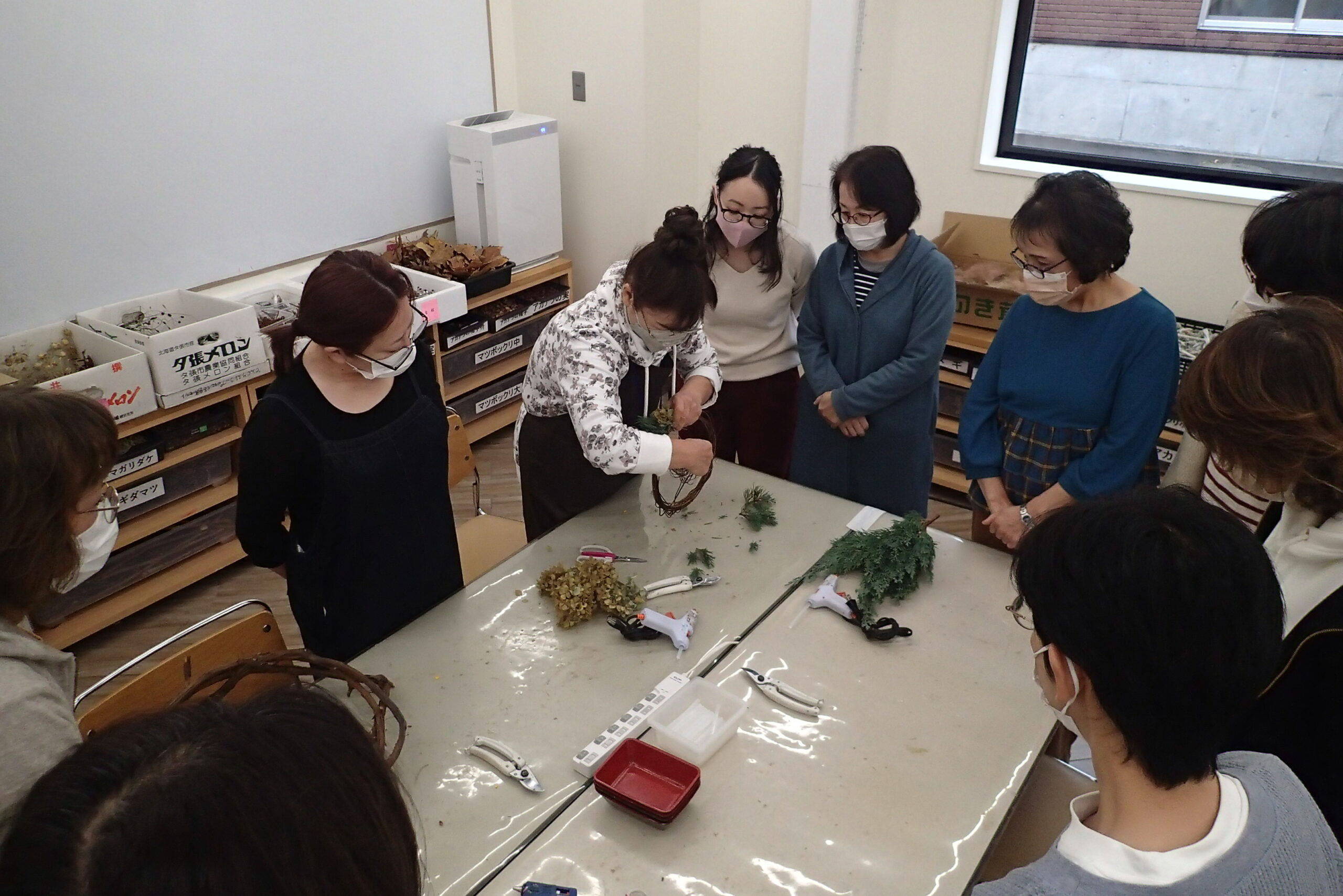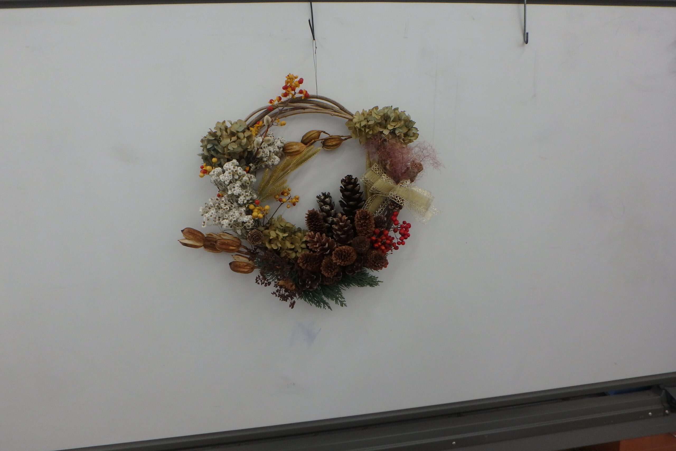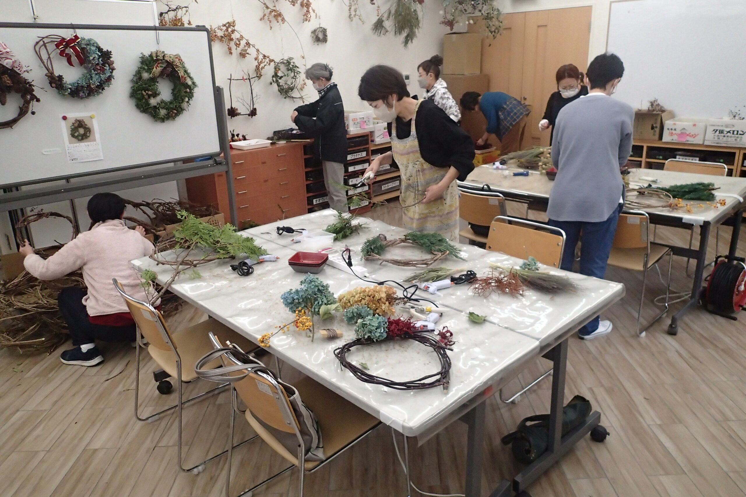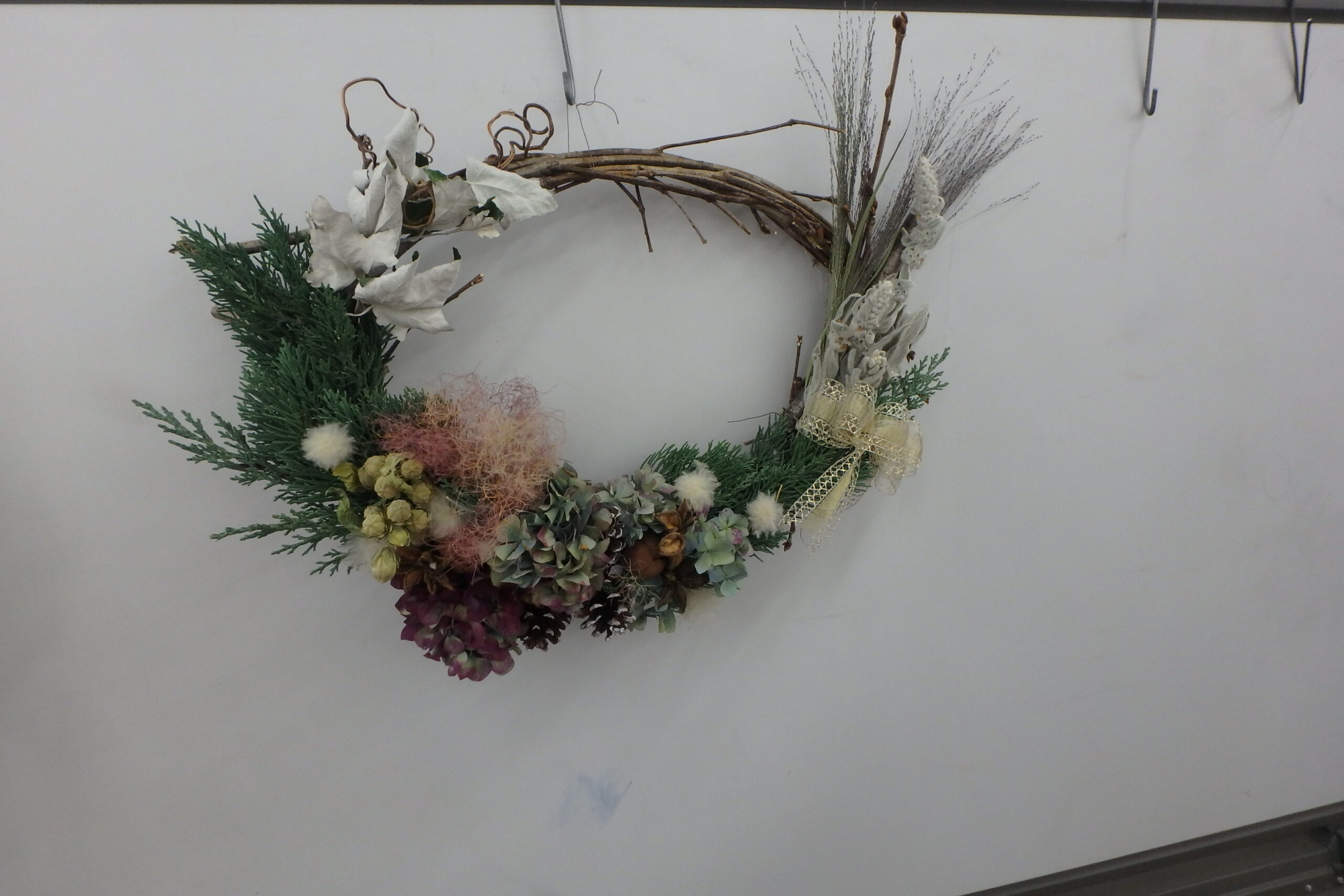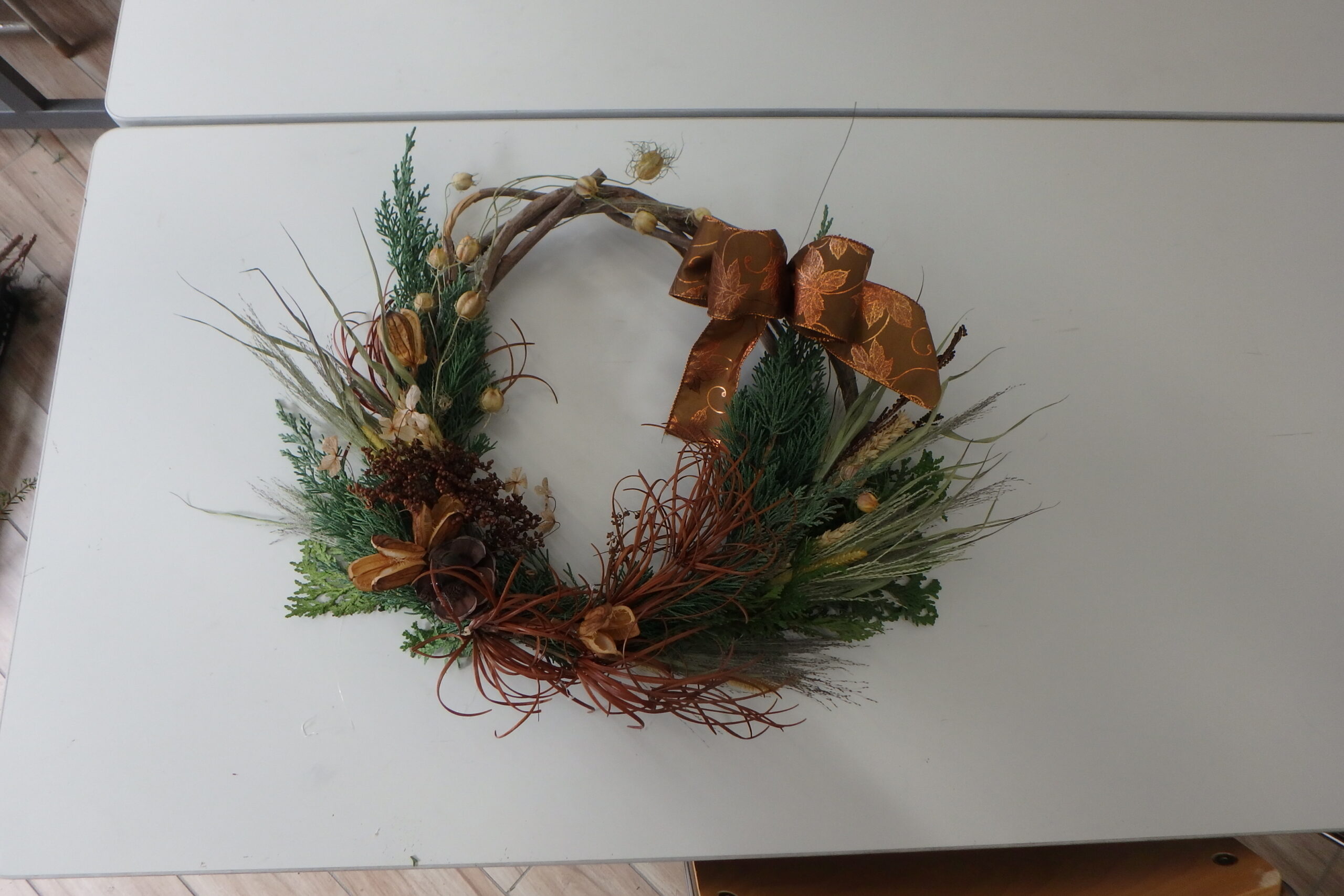 参加された皆さまは、2時間をかけてセンスあふれるクリスマスリースを作ってくれましたよ。
