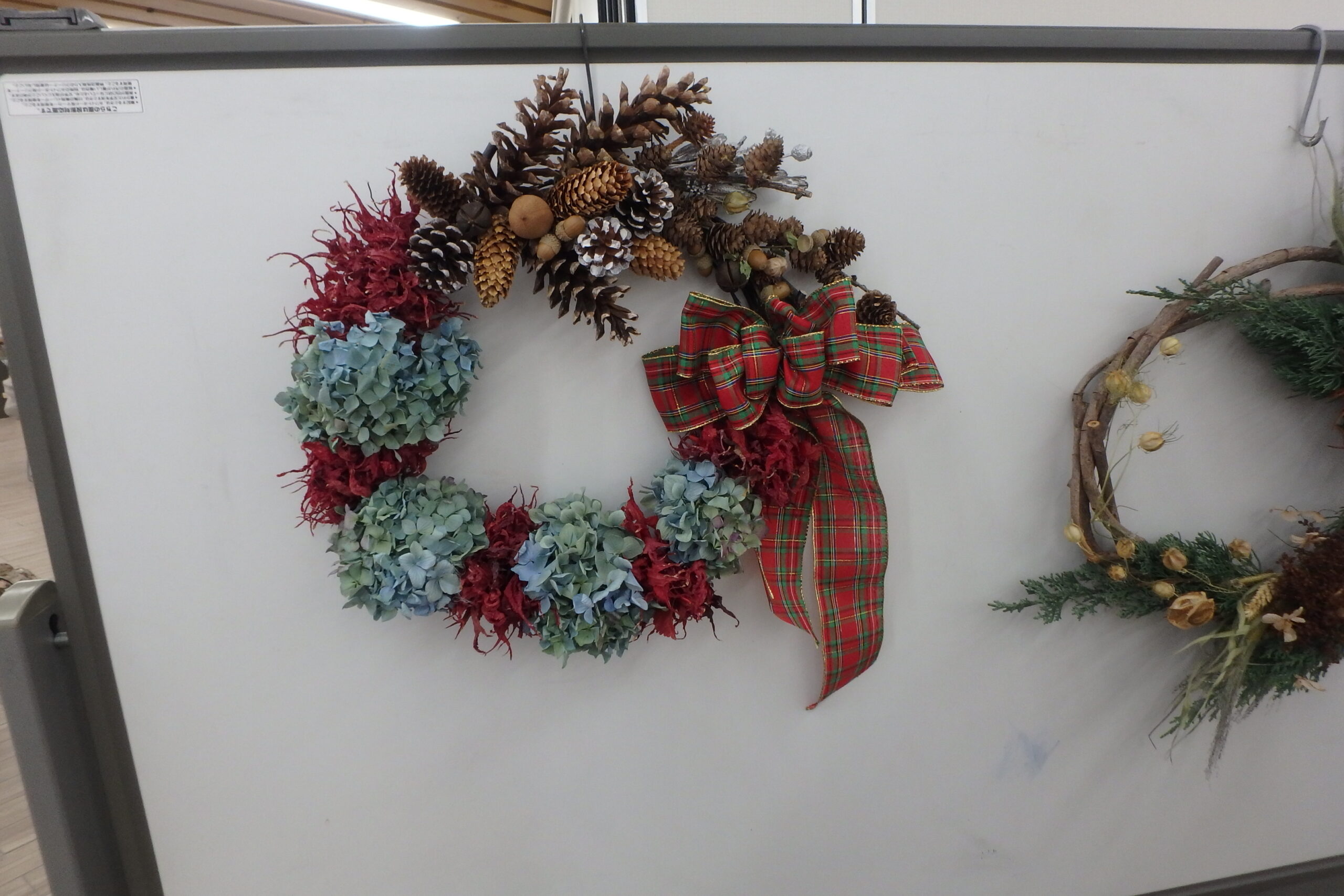 写真のリースは高さ60センチ幅90センチの大きなものですよ。限定1個限り3000円で販売中です。