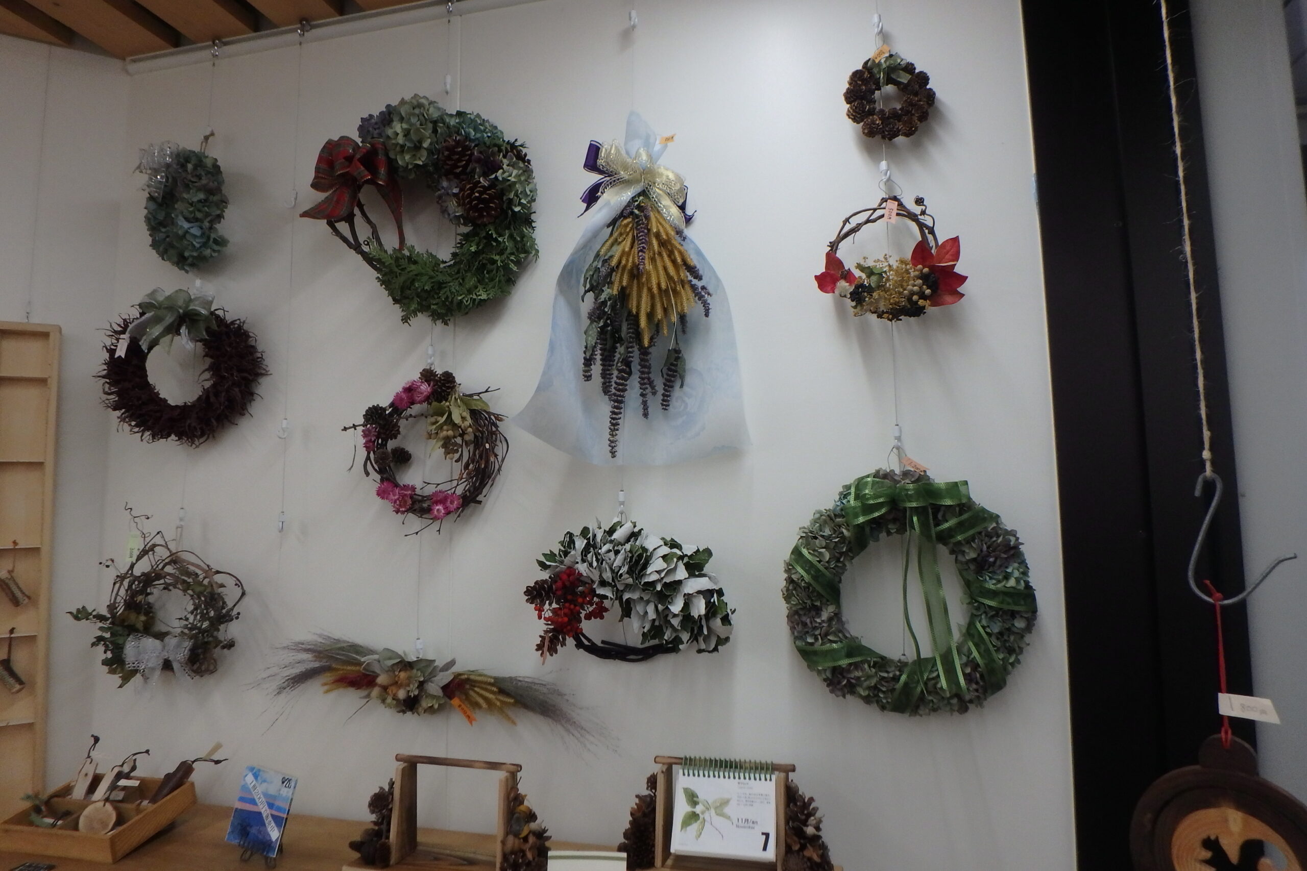 「クリスマスリースを作ろう」に参加されなかった皆さんも西岡公園の管理事務所で販売しているリースはいかがですか。