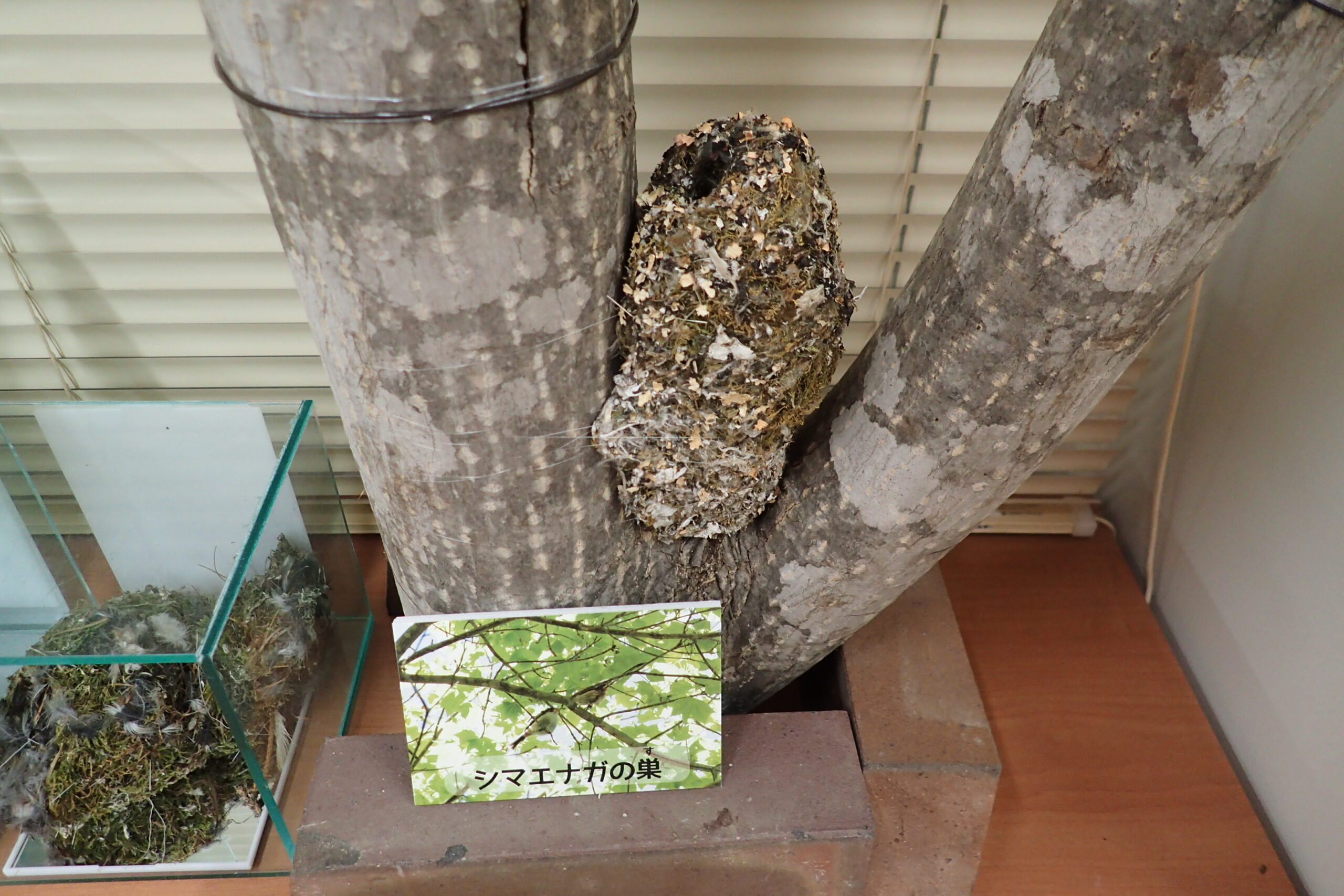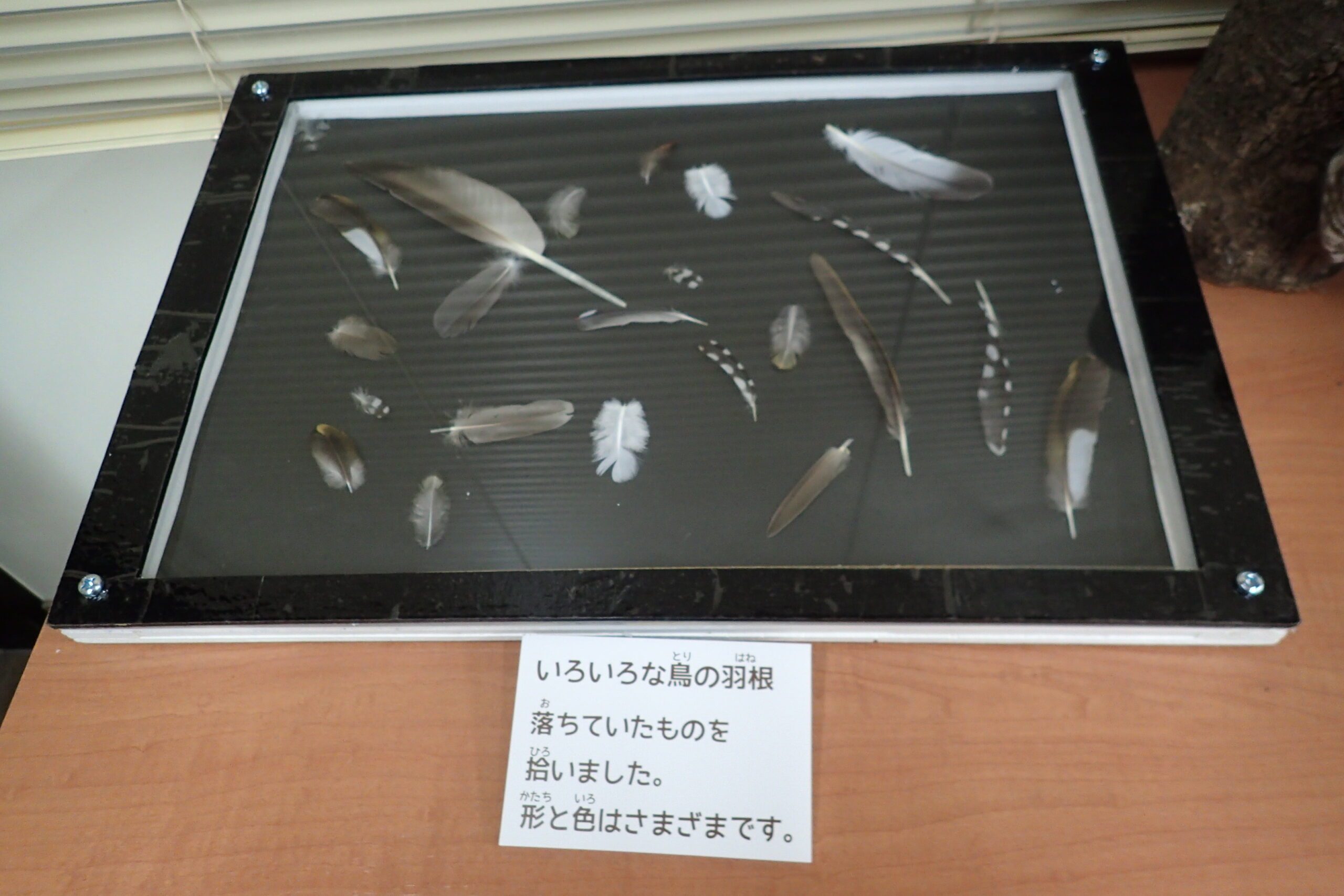 西岡公園では、風や雪で落ちた古巣や拾ったいろいろな野鳥たちの羽根を保存していました。