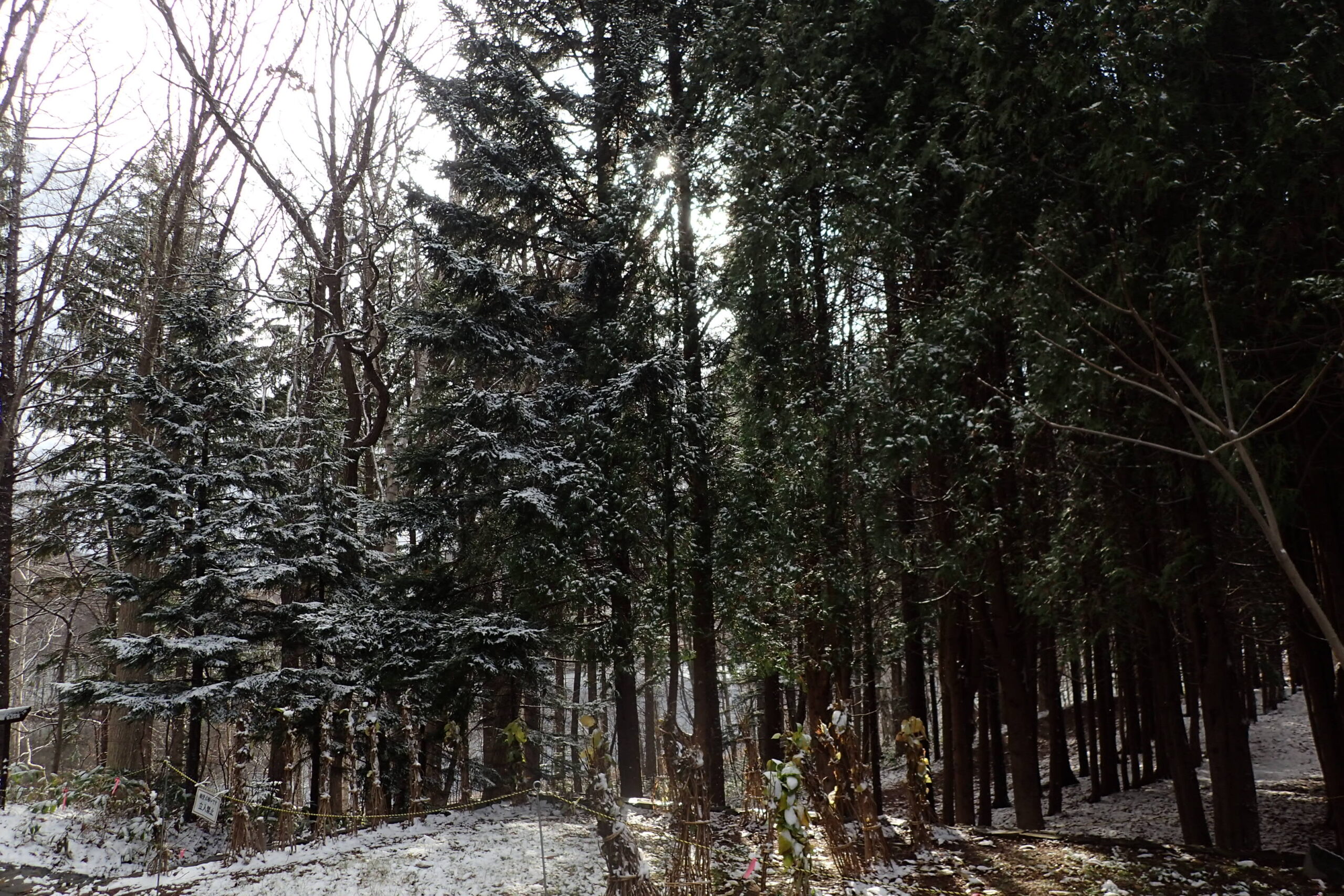 針葉樹に雪が載ると雪国らしい雰囲気が出ますね。