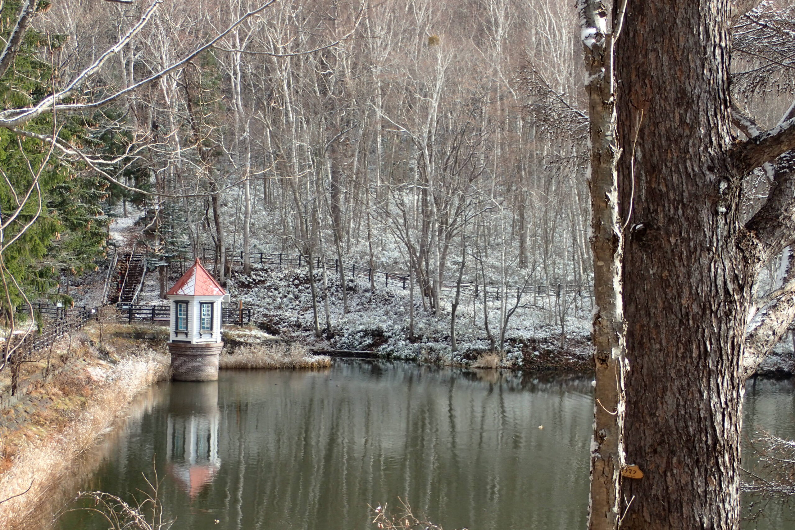 池がすっかり凍るのは去年は12月の中旬頃でした。