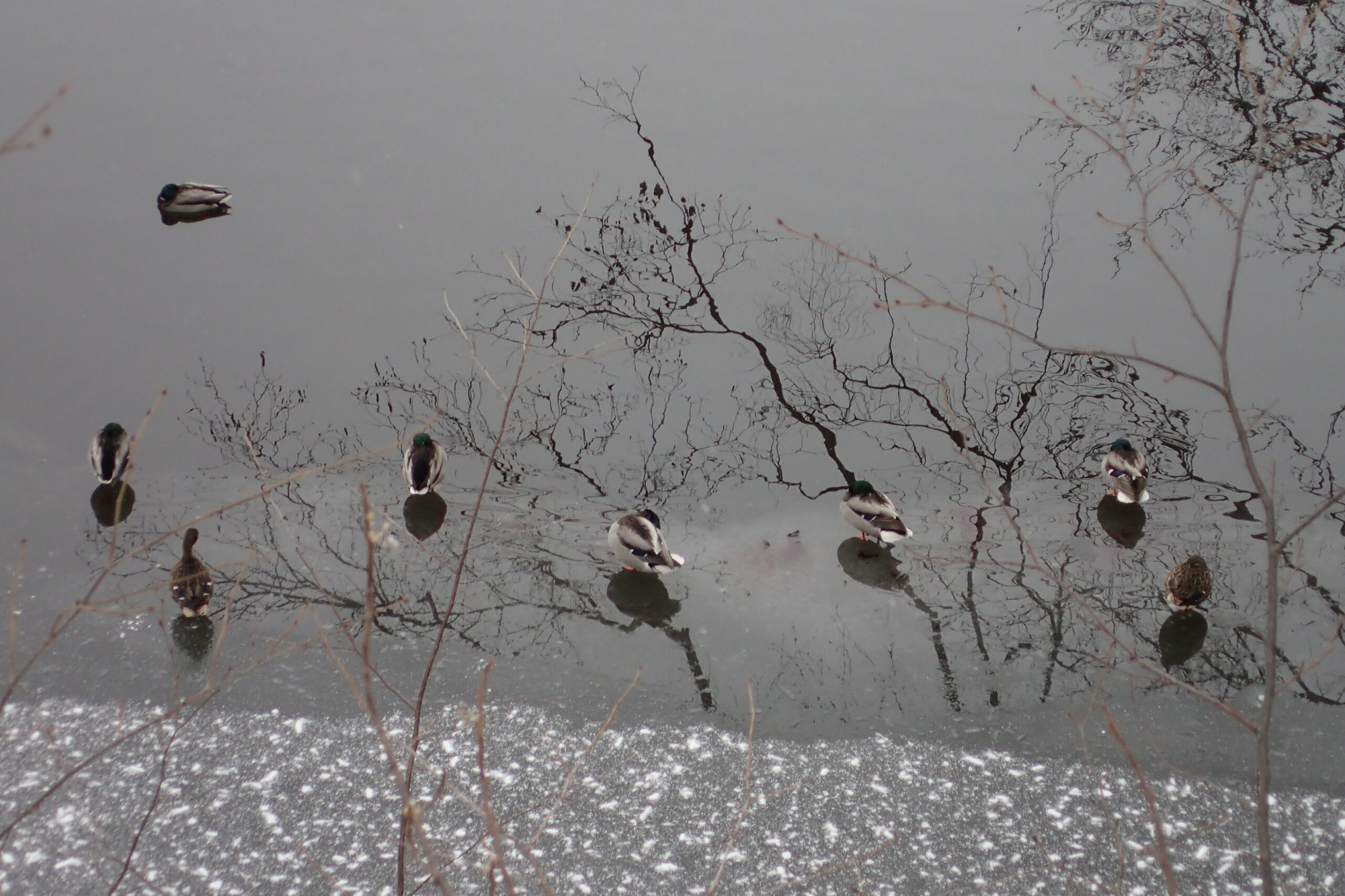 急に寒い日が多くなり、池も凍り始めてきましたよ。