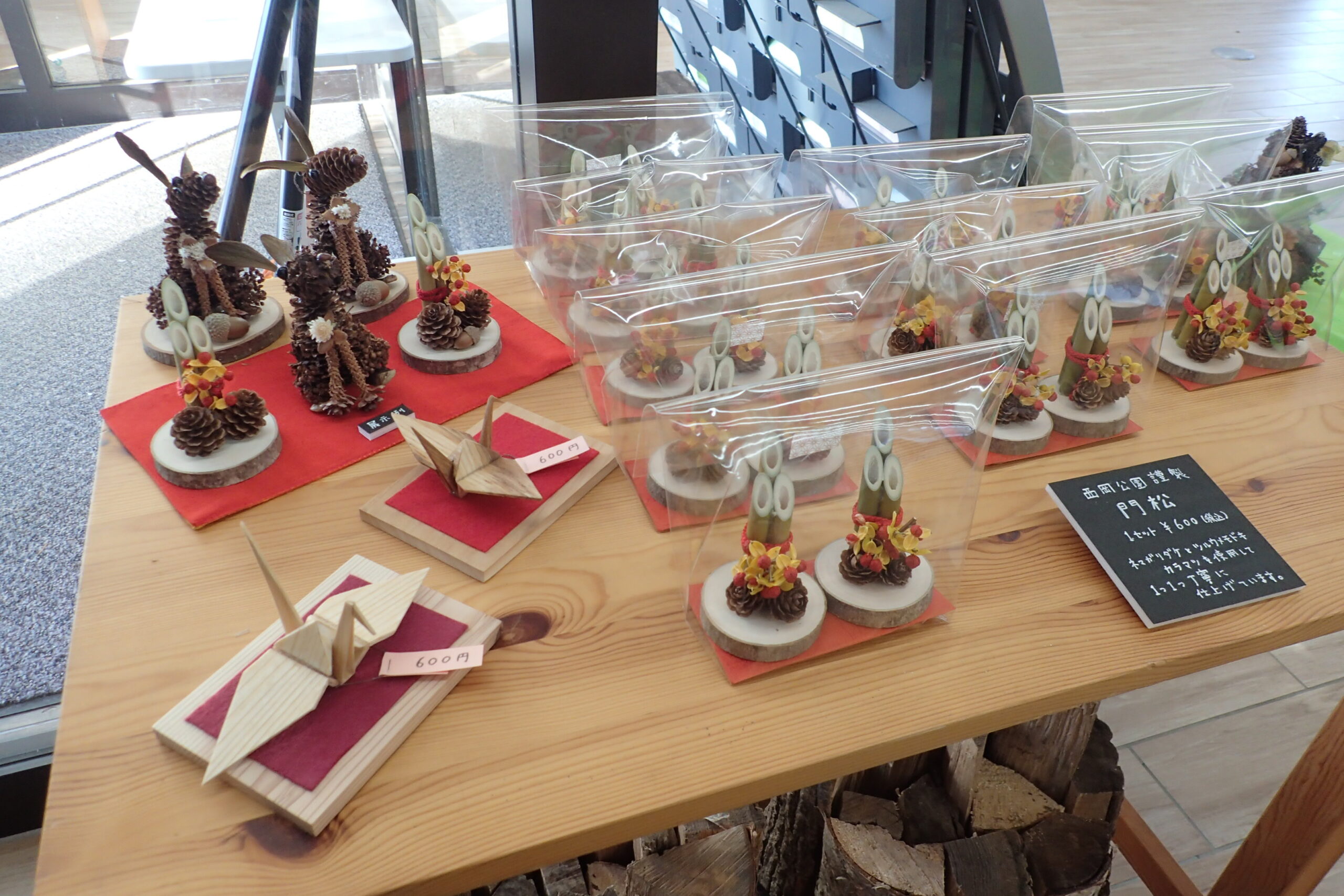 そんな西岡公園管理事務所の販売コーナーではボランティア「森の工作」の皆さんが作ってくれた「ミニ門松」の販売を始めましたよ。