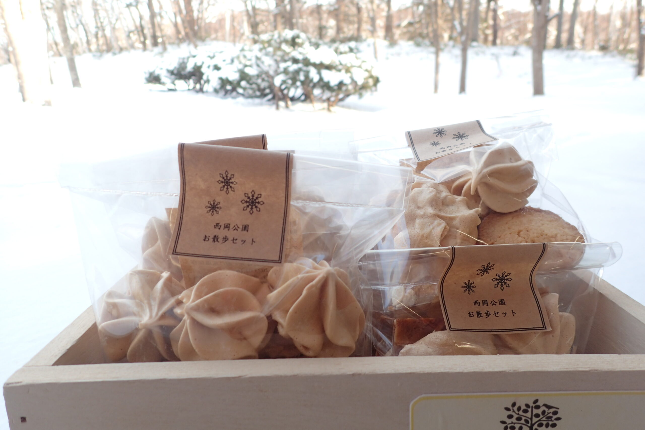 西岡公園内は積雪があり、凍っていたりとけている場所もあります。