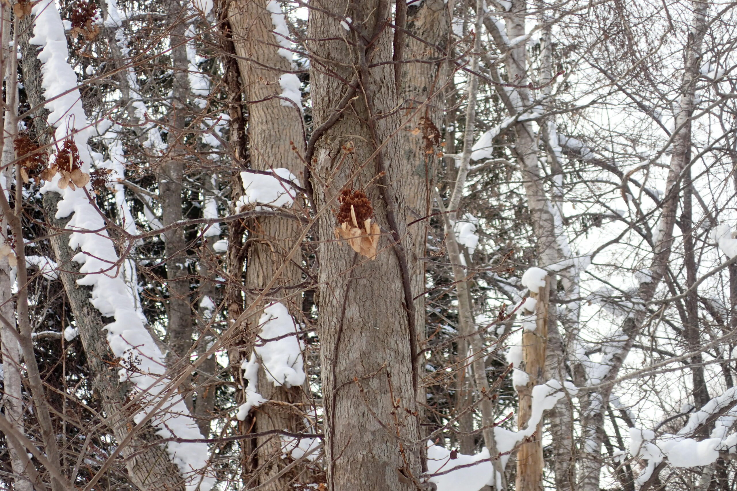 今日もカラ類などの野鳥が梢で飛び回っていましたよ。野鳥たちのお気に入りの樹のようですね。