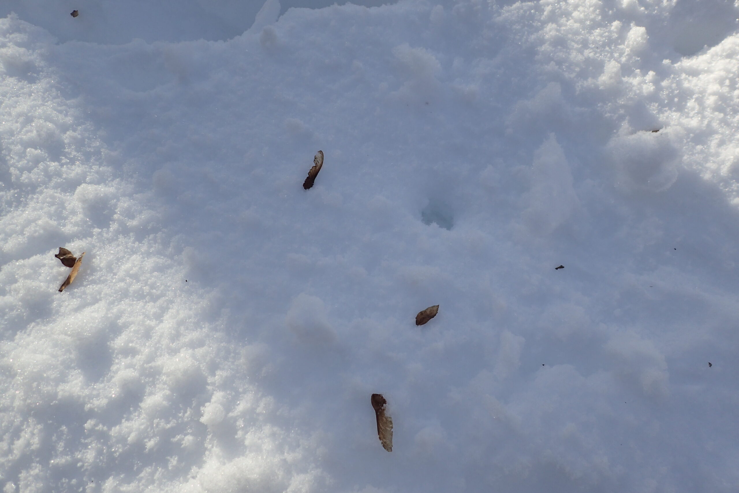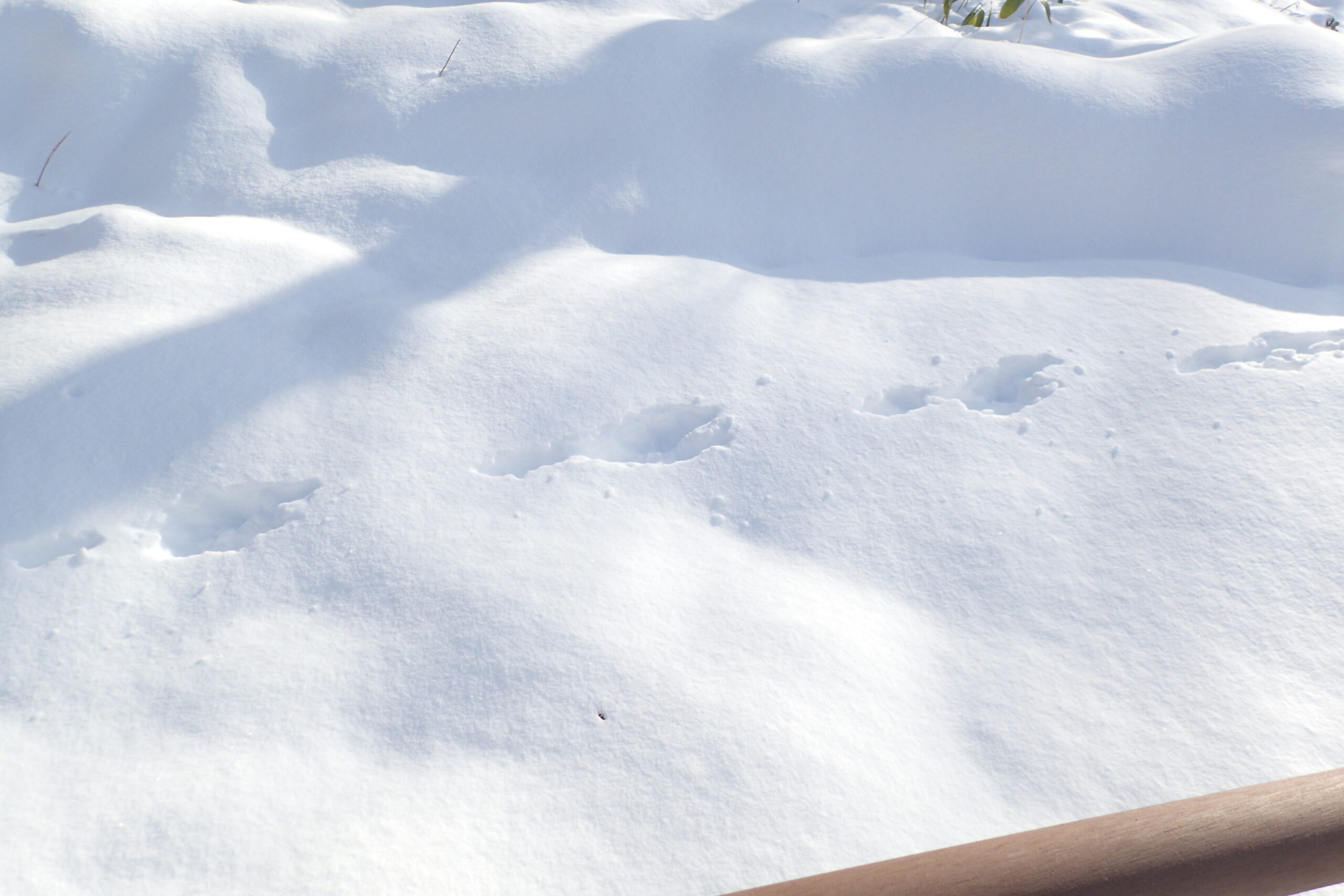 雪の上にはいろいろな生きものたちの足跡が残されています。
