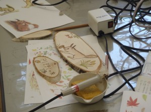 今日は、今年度最初の子りす工房~おとなの日で、バーニングペンで木のプレート