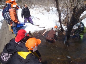 新規隊員は、ちょっとドキドキ・・・・おっかなびっくり川に入っていましたが、継続隊員が
