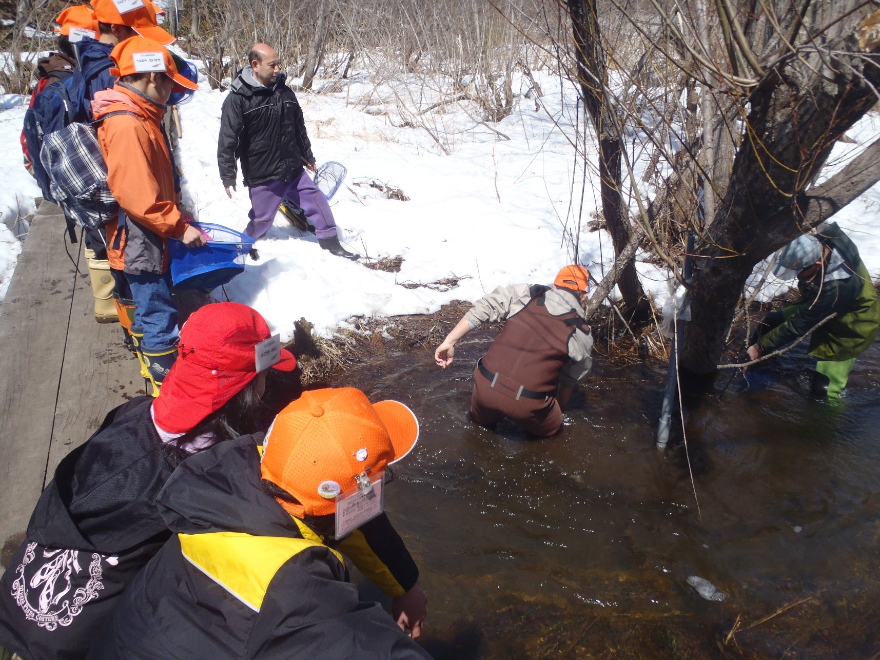 そんな湿原の川をのぞいてみると、イバラトミヨや冬眠中のツチガエル、小さな