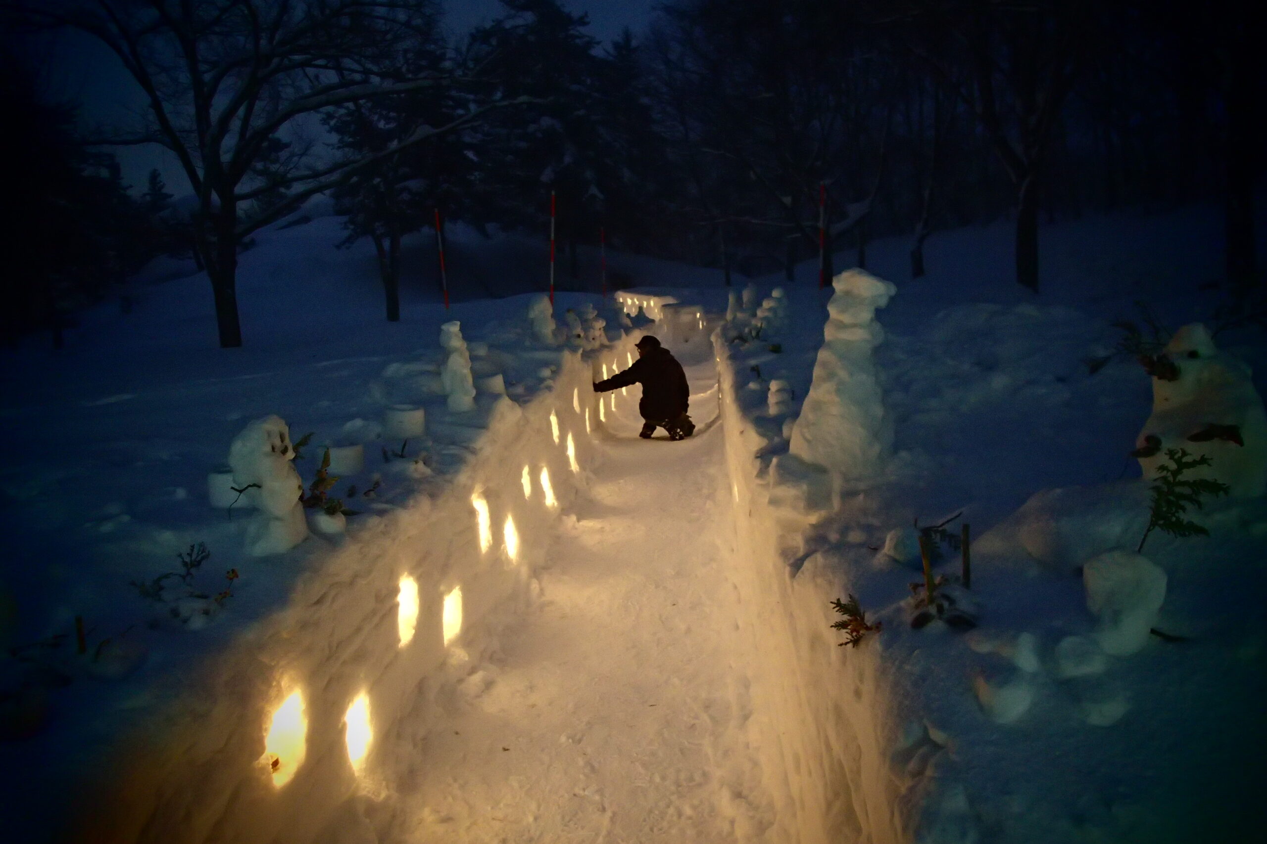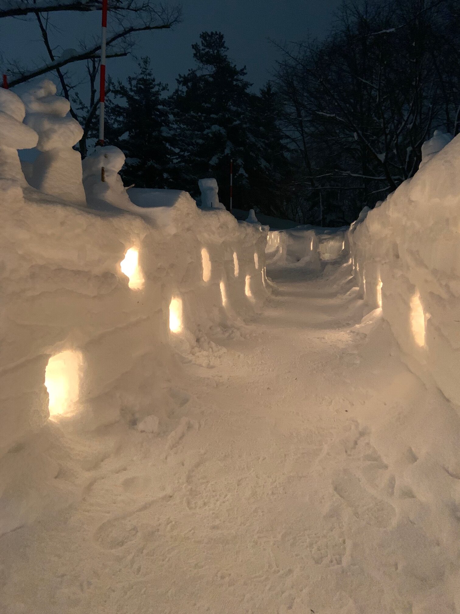 雪の回廊にキャンドルの温かい揺らぎが幻想的でしたよ。
