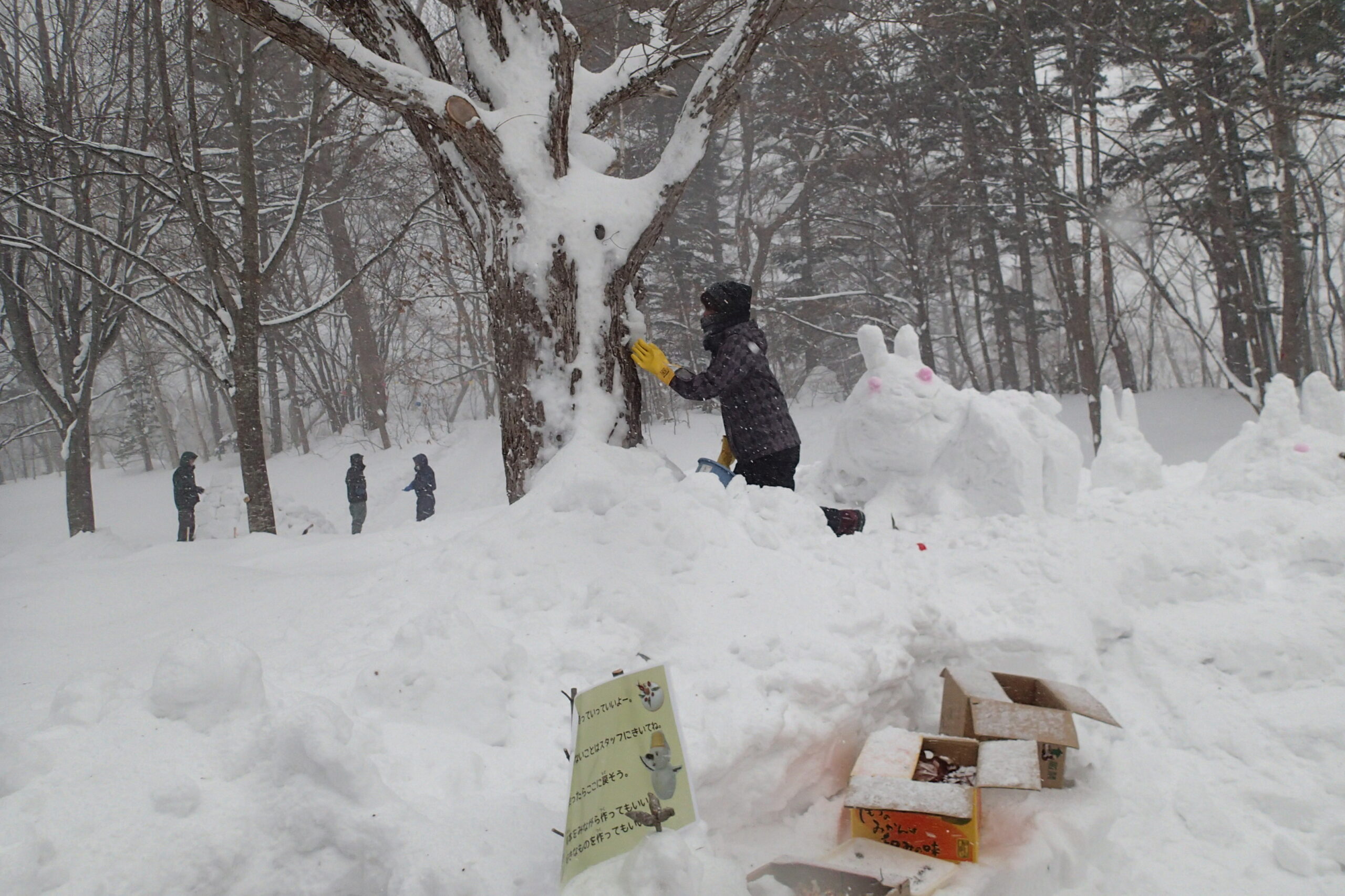 今年の干支のウサギの雪像も出現です。