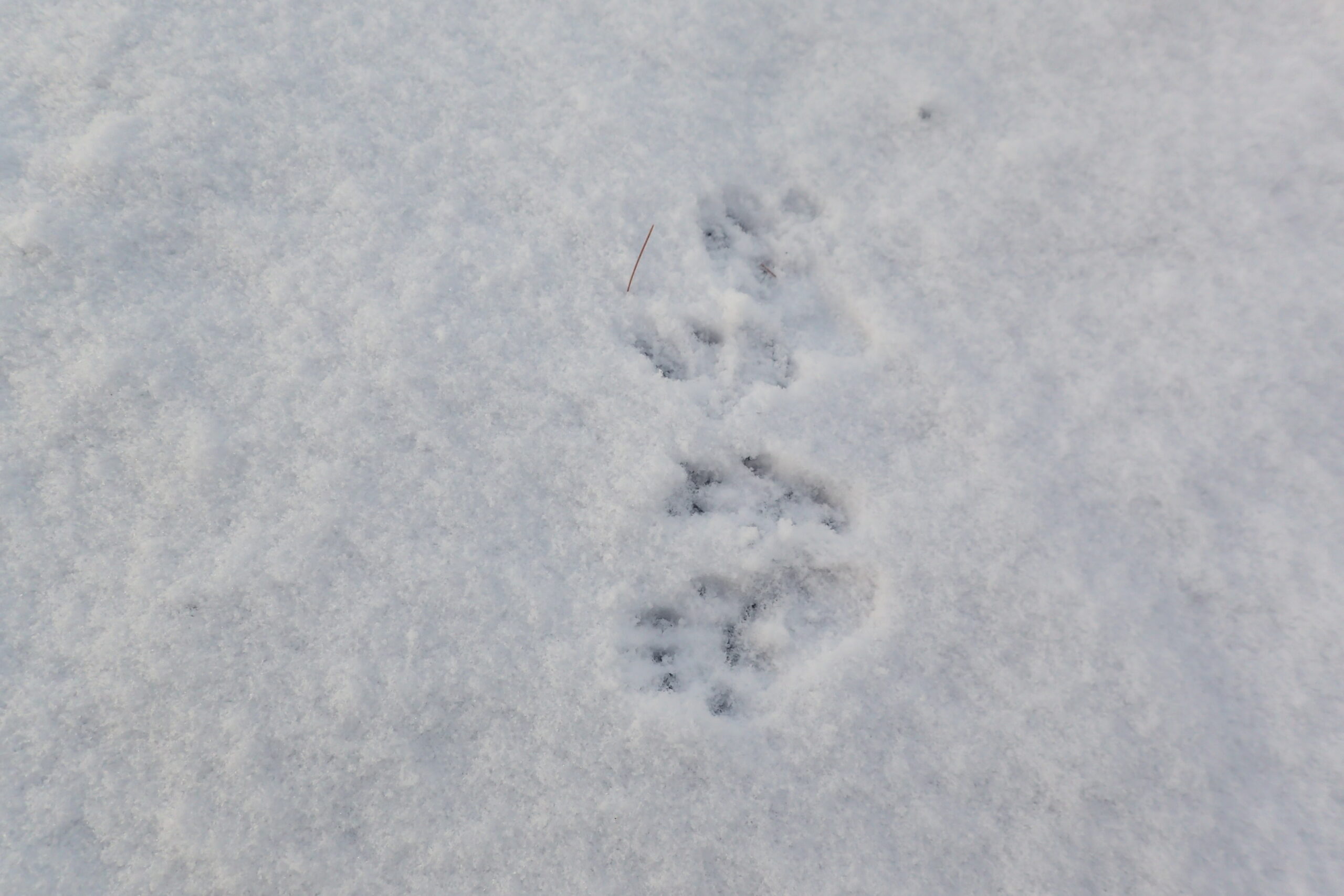 エゾリスの足跡がくっきりと残っています。他にも、キタキツネや鳥の足跡がありましたよ。