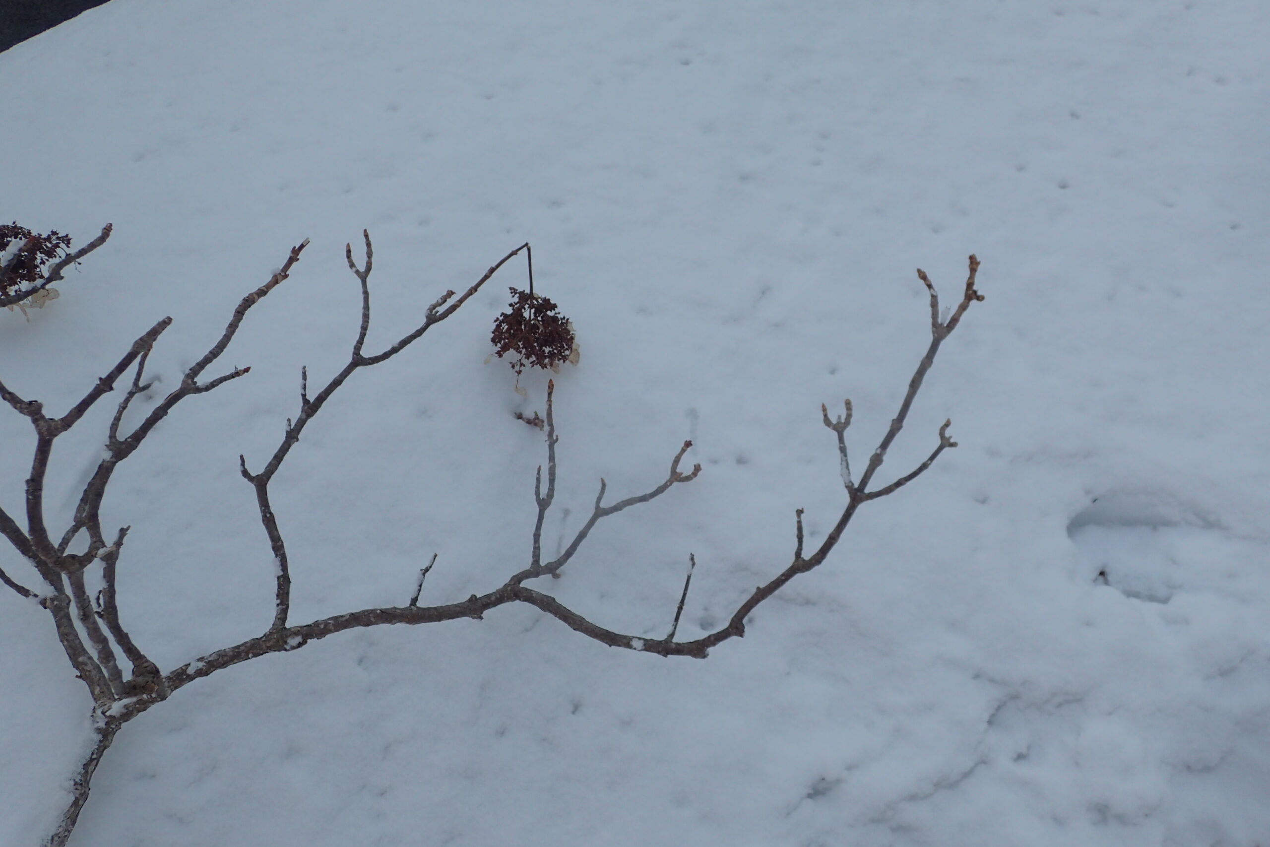 こちらは飾り花が冬まで残る似た感じのつる性の樹木、ツルアジサイの冬芽です。