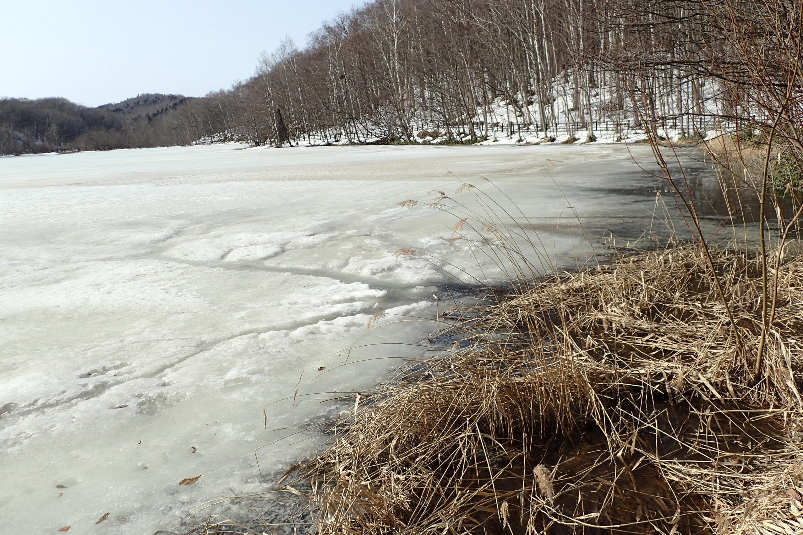 池の氷のふちや湿原から川が流れ込む辺りは少し融けてきているようです。