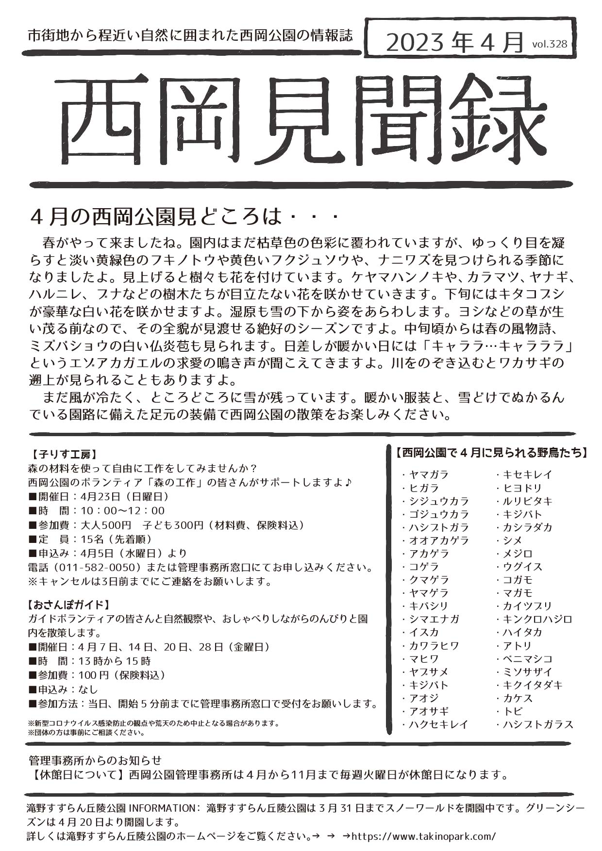 そんな西岡公園では「西岡見聞録」4月号を発行しました。