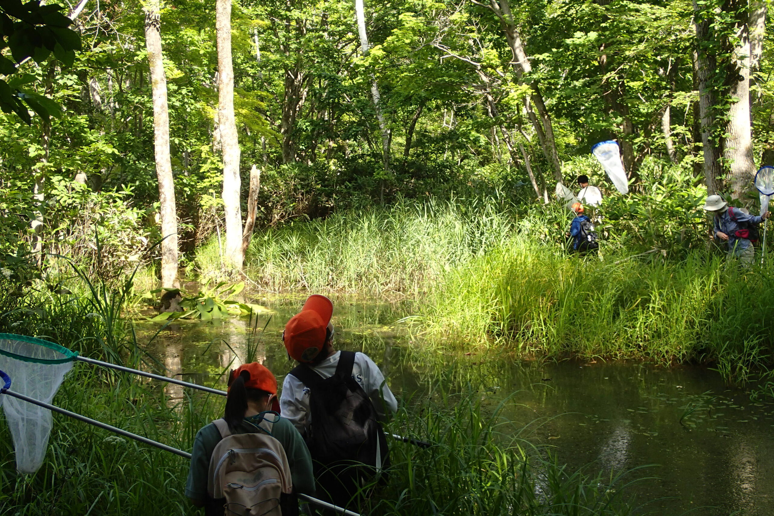 水環境が豊かな西岡公園で、トンボの調査を行う「西岡ヤンマ団」の