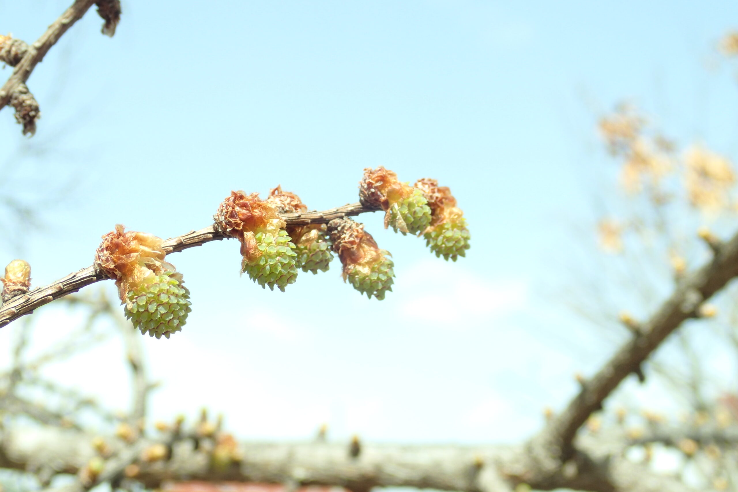 同じくカラマツの花ですが、雄花は下向きについていますよ。