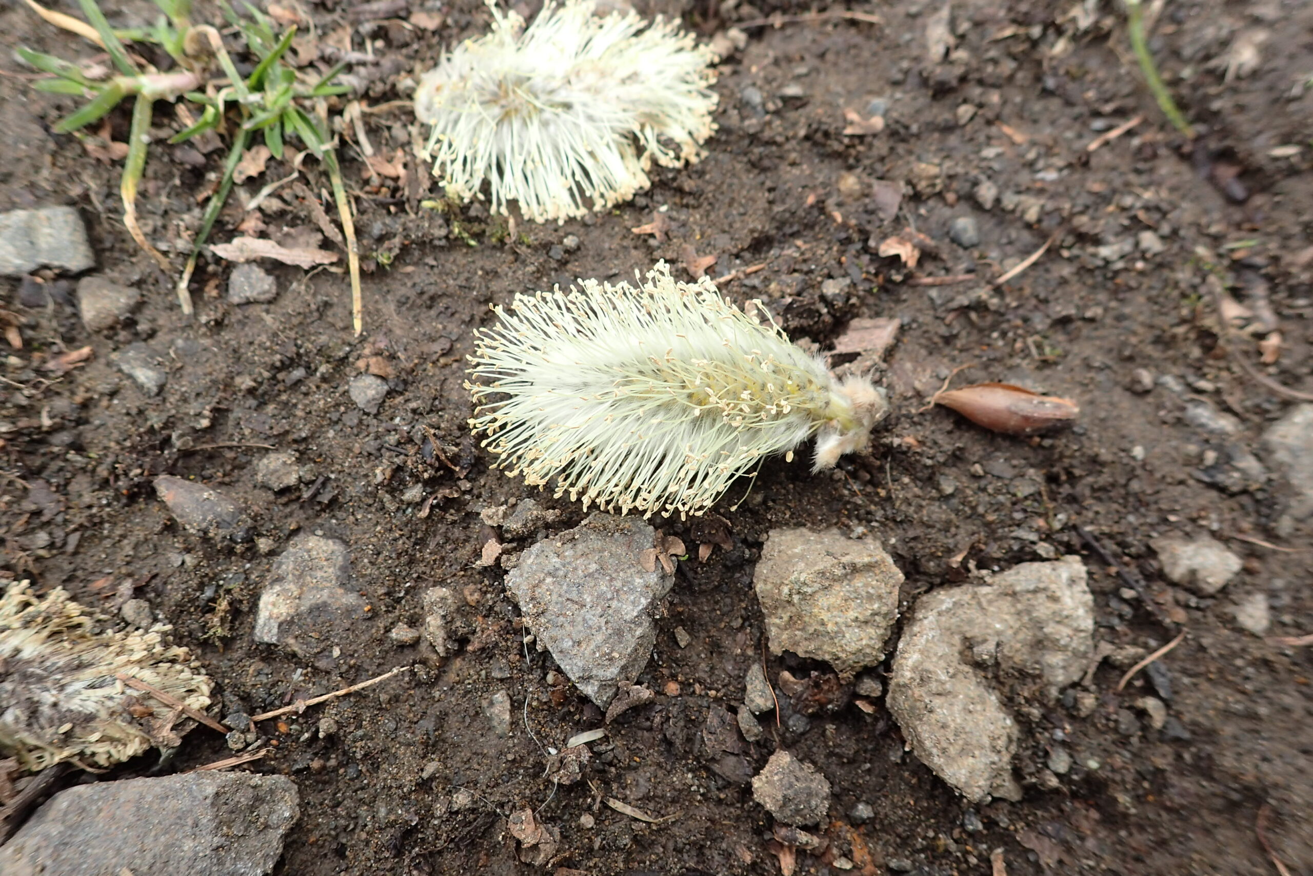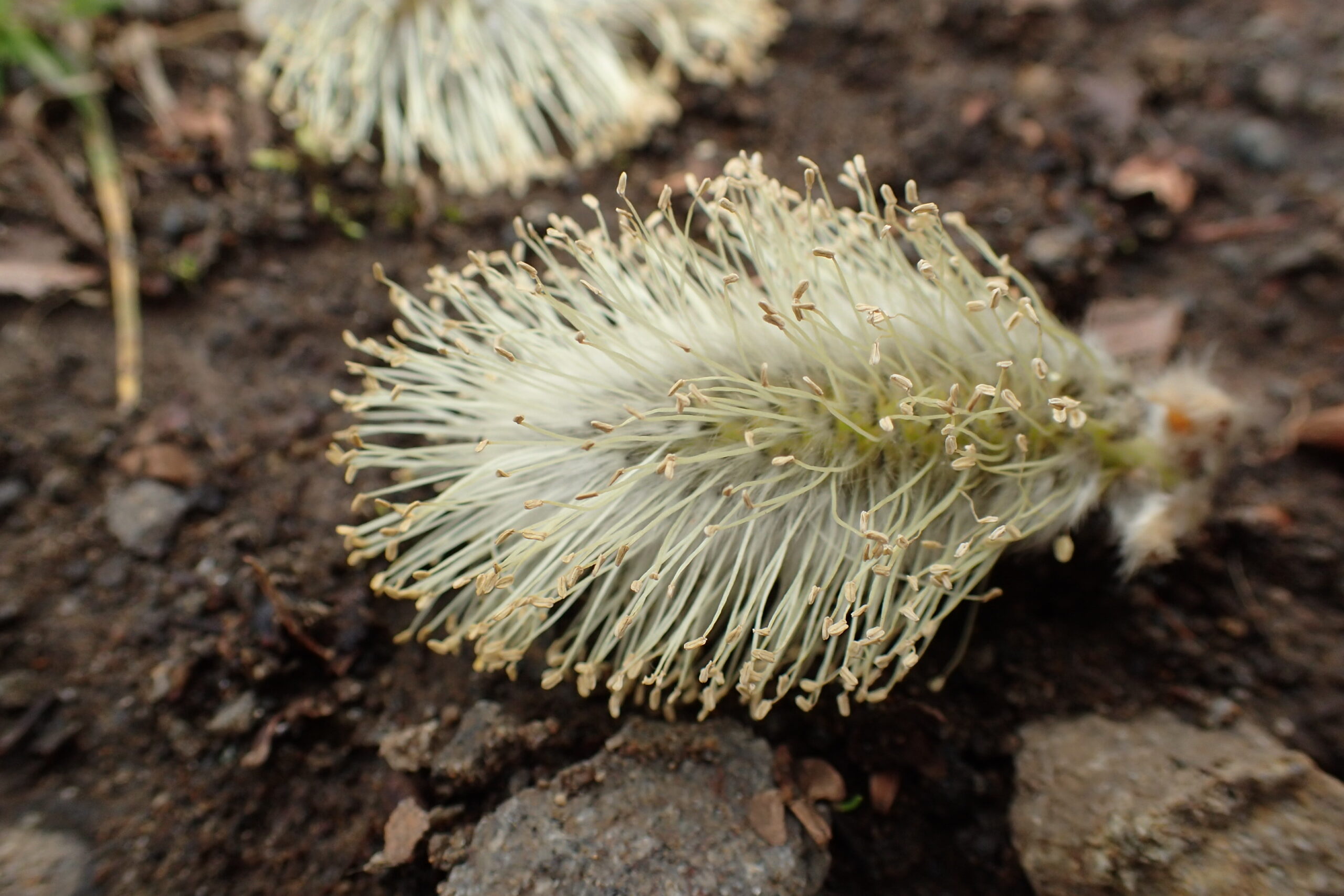 園路にはフワフワのものが落ちています。拾ってみるとヤナギの花でした。