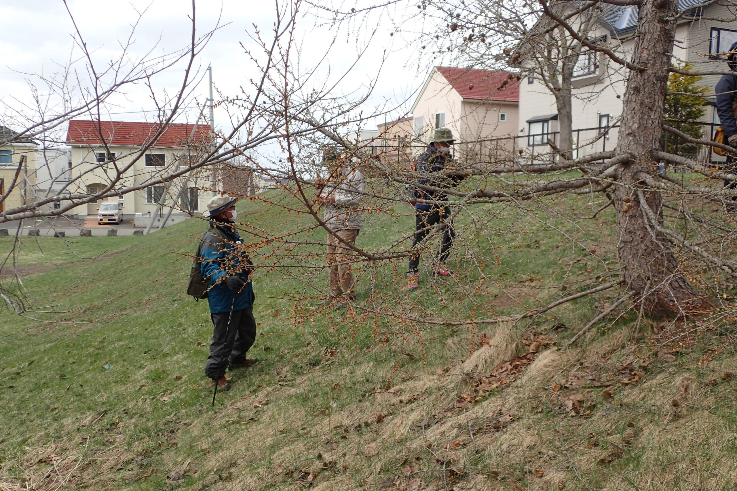カラマツはポピュラーな樹木ですが、高い所で咲いていることが多くて、観察の機会があまり無いので、皆さんは興味を持って見てくれましたよ。