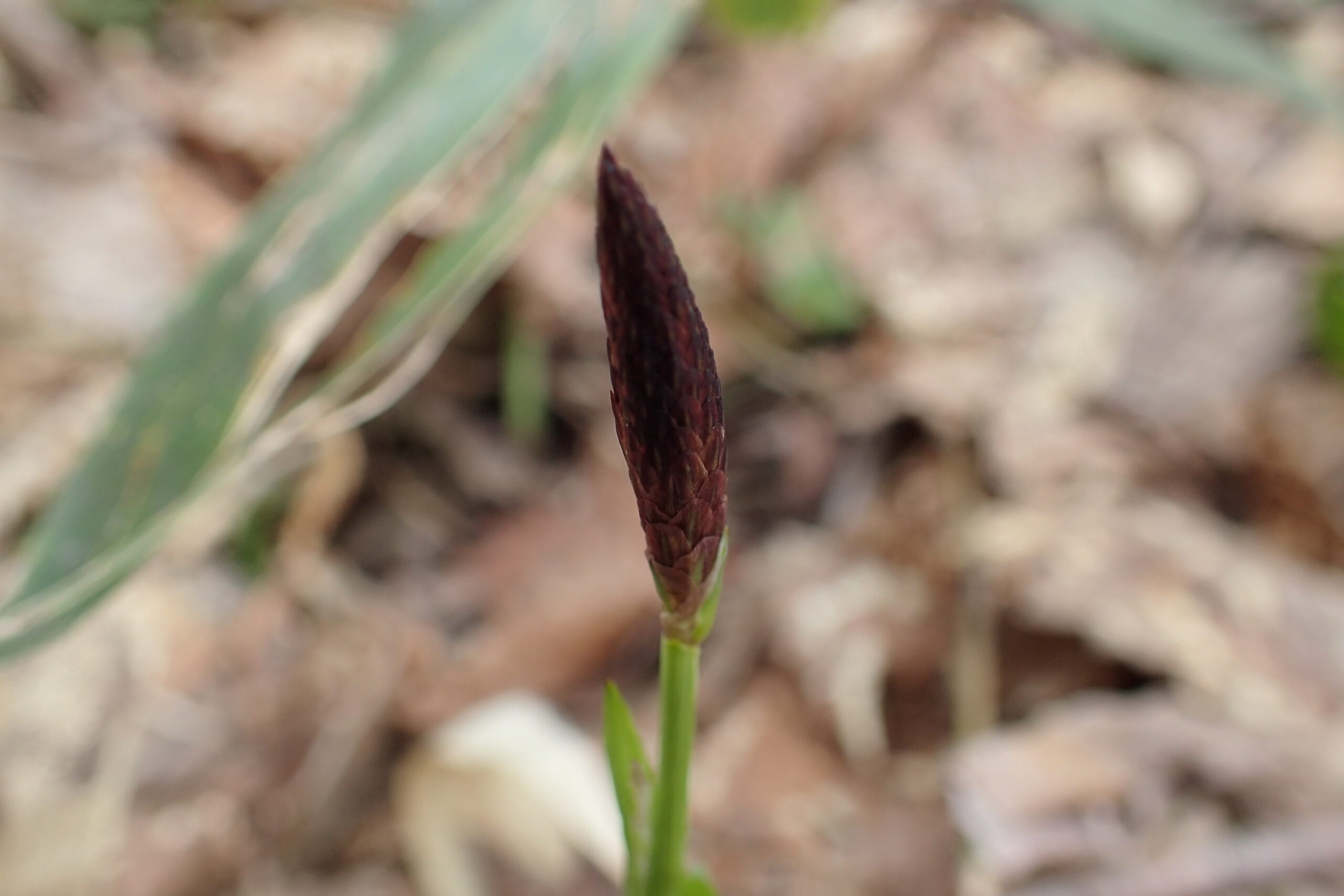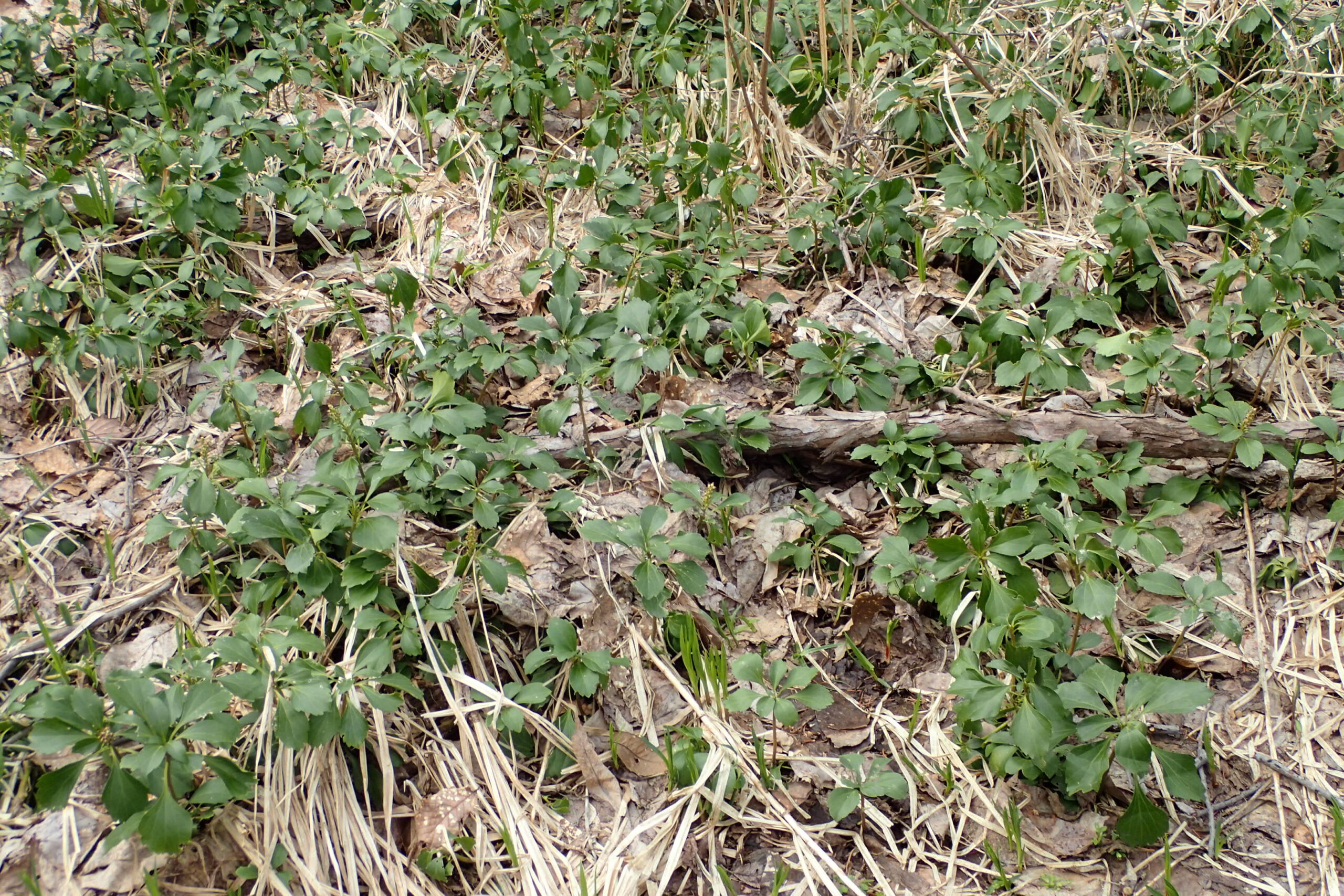 森の木陰で見つけたのはフッキソウです。つぼみがたくさんついていました。