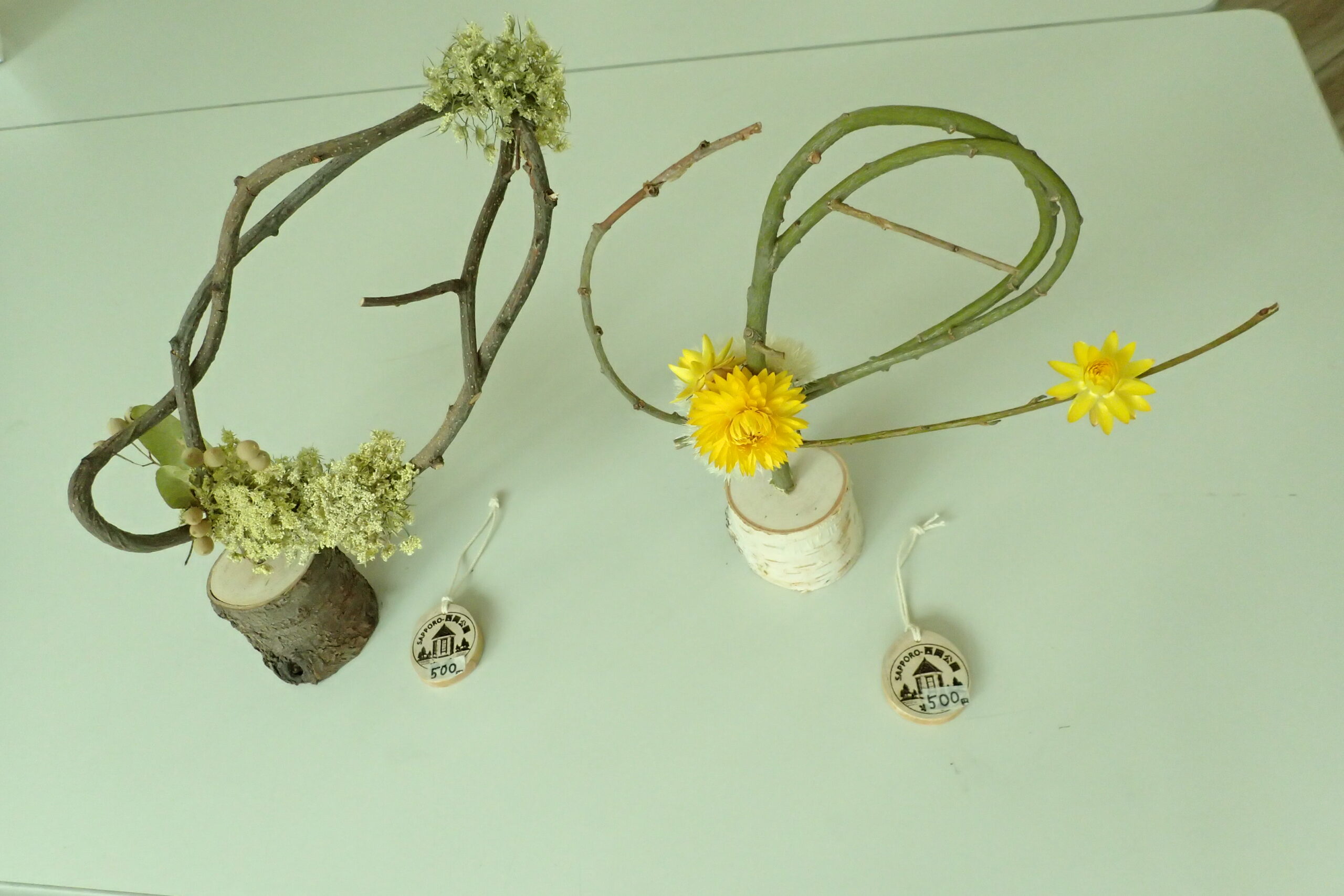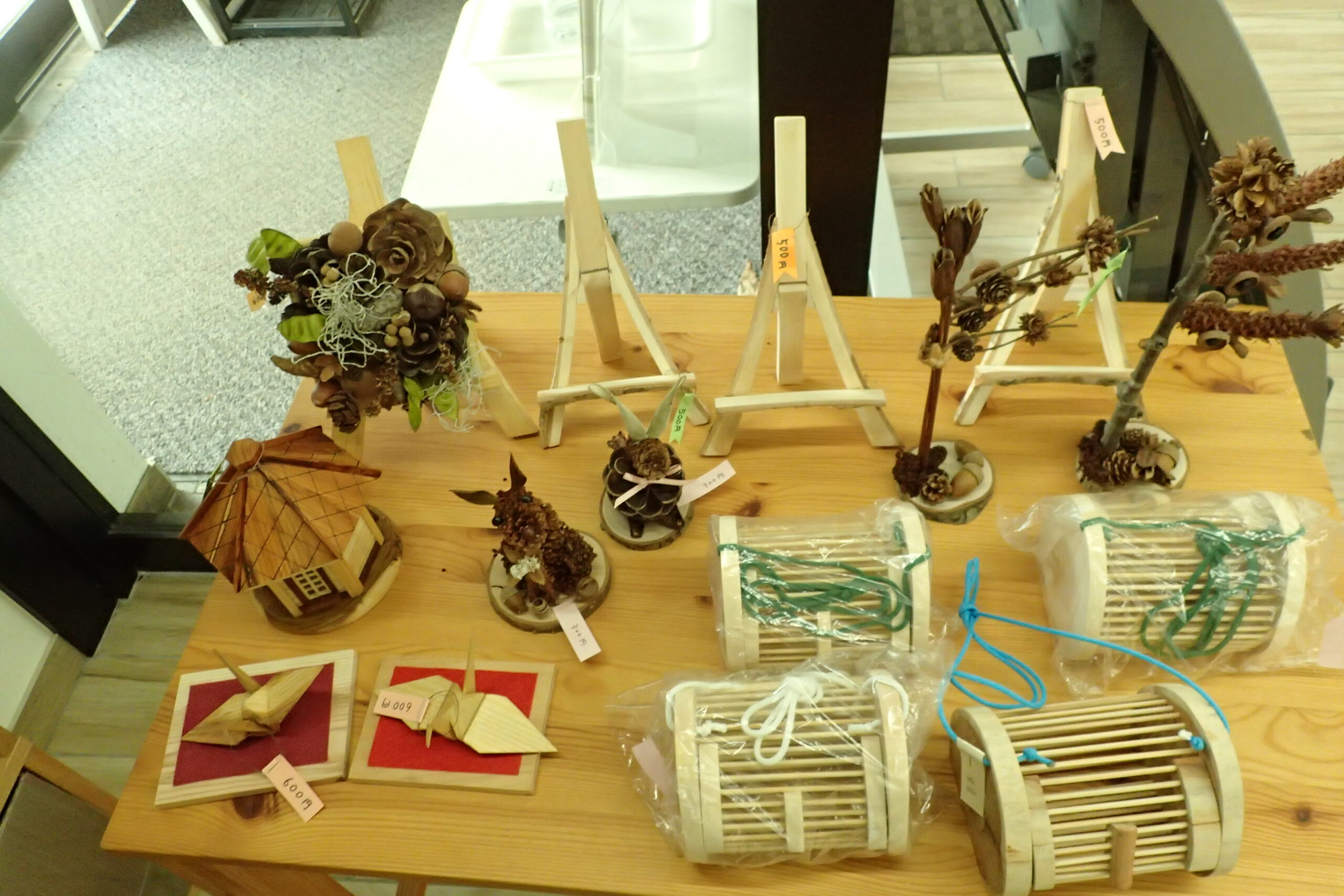 シラカンバで作られたミニイーゼルなどのクラフト品や自然素材でできた虫かごもありますよ。