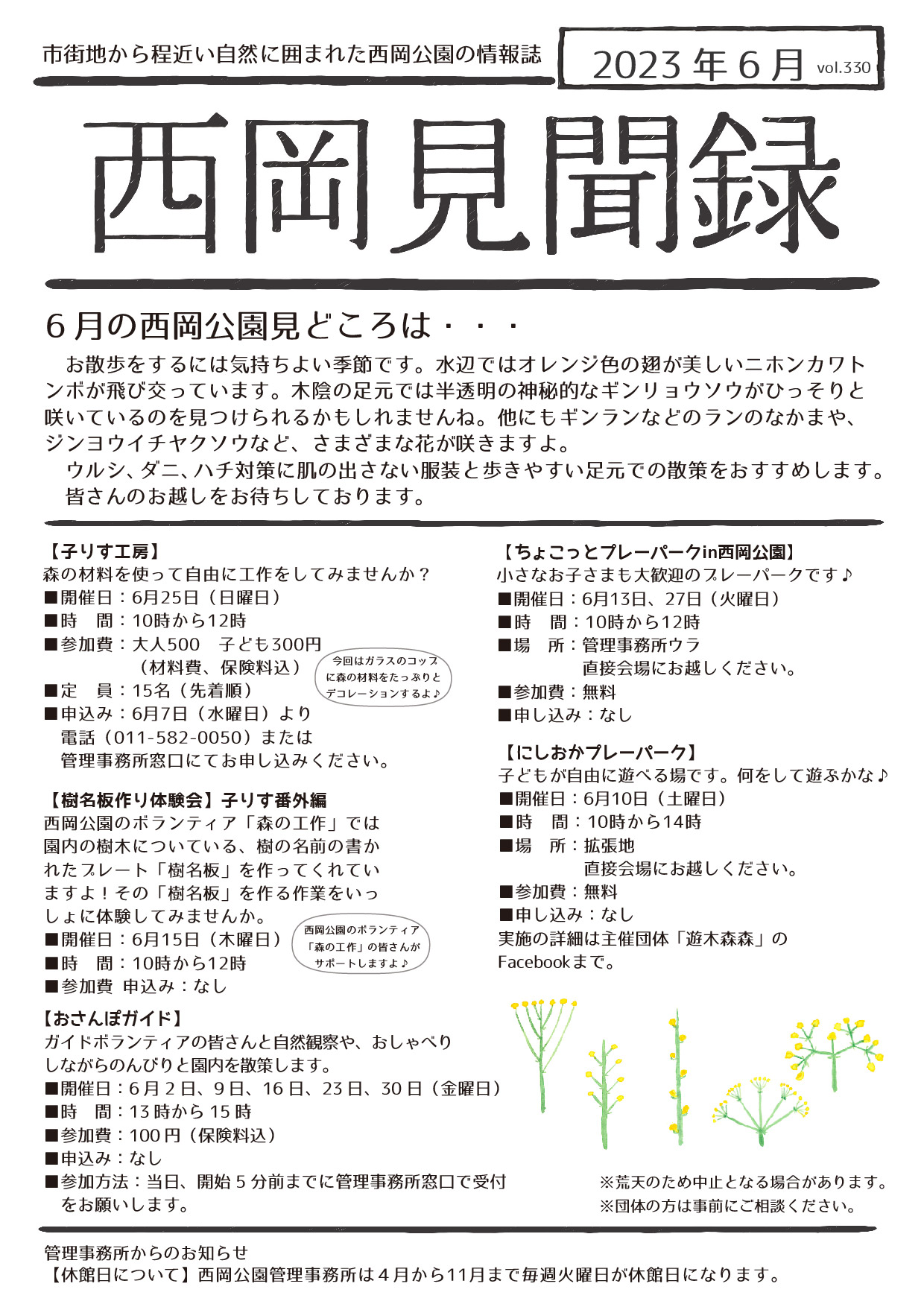 そんな西岡公園では「西岡見聞録」6月号を発行しました。