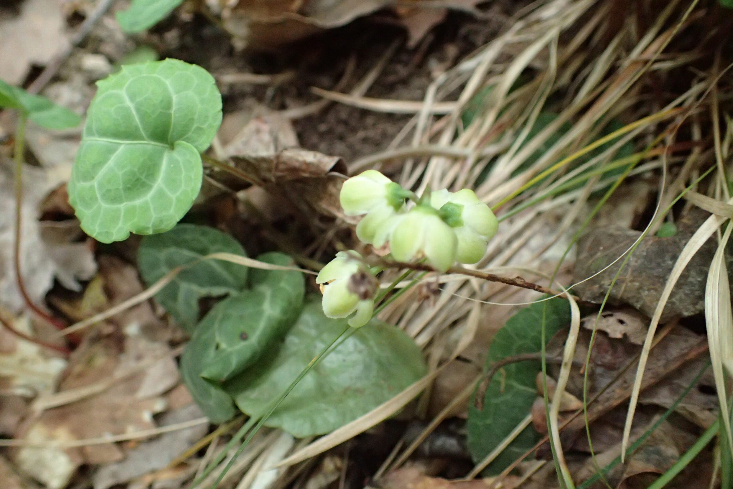 ジンヨウイチヤクソウのうつむいた白い花も咲いていましたよ。