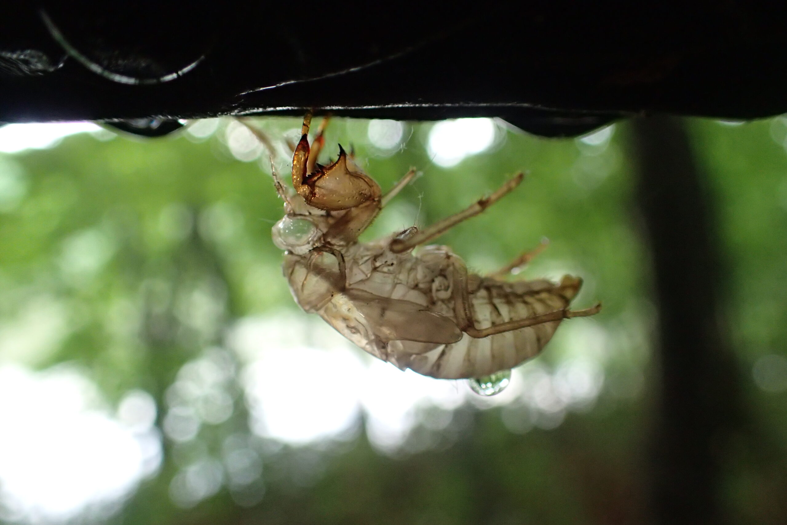 園路脇の柵にはエゾハルゼミの抜け殻(羽化殻)がついていましたよ。