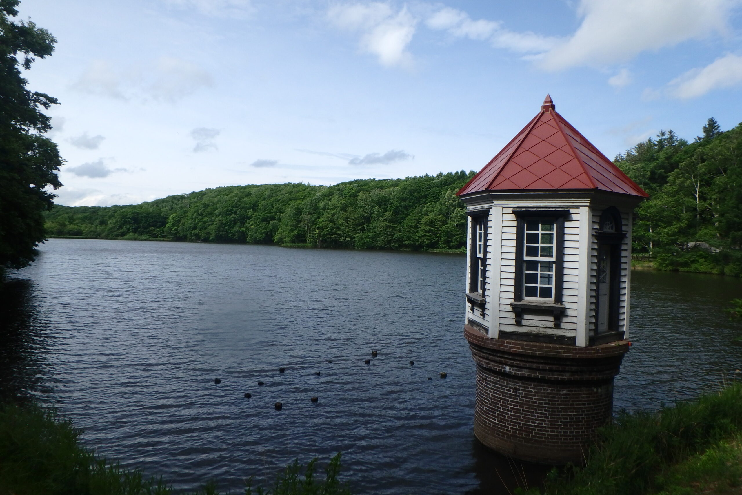 今日は風が吹いていて、池の水面にさざ波が立っていました。