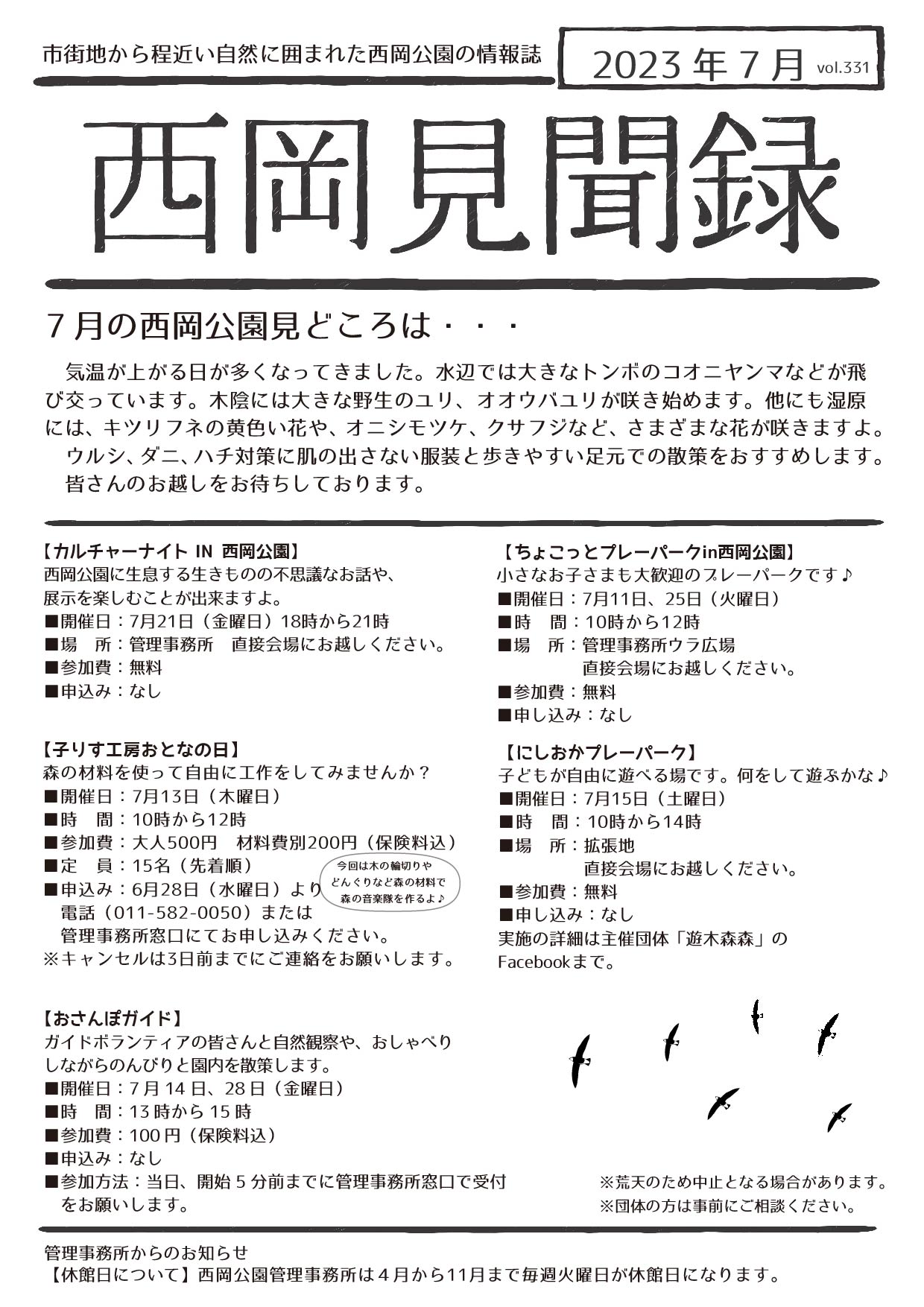 そんな西岡公園では「西岡見聞録」7月号を発行しましたよ。