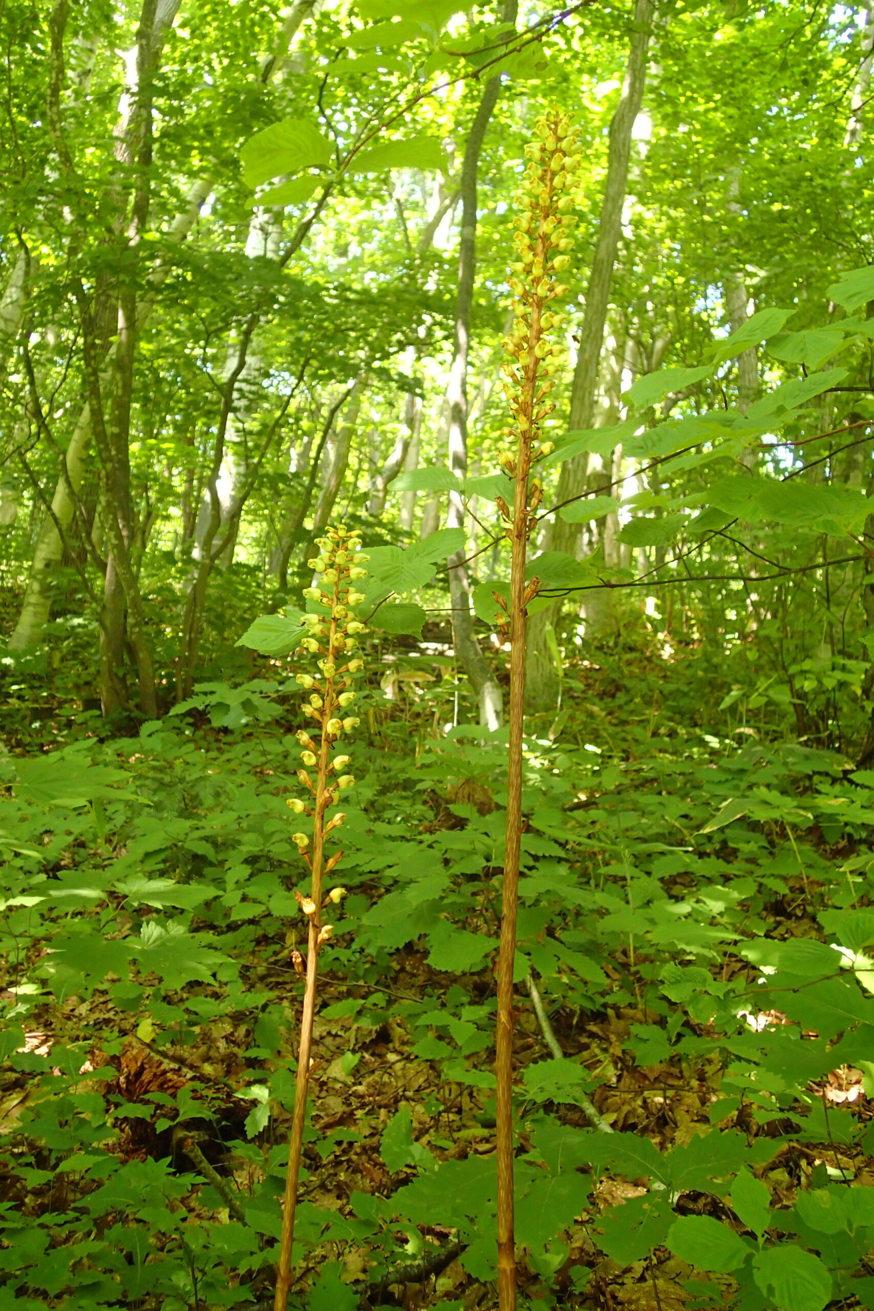 菌従属栄養植物といって光合成しないで根の部分に入り込んできた菌類を分解、吸収して栄養源にする植物ですよ。