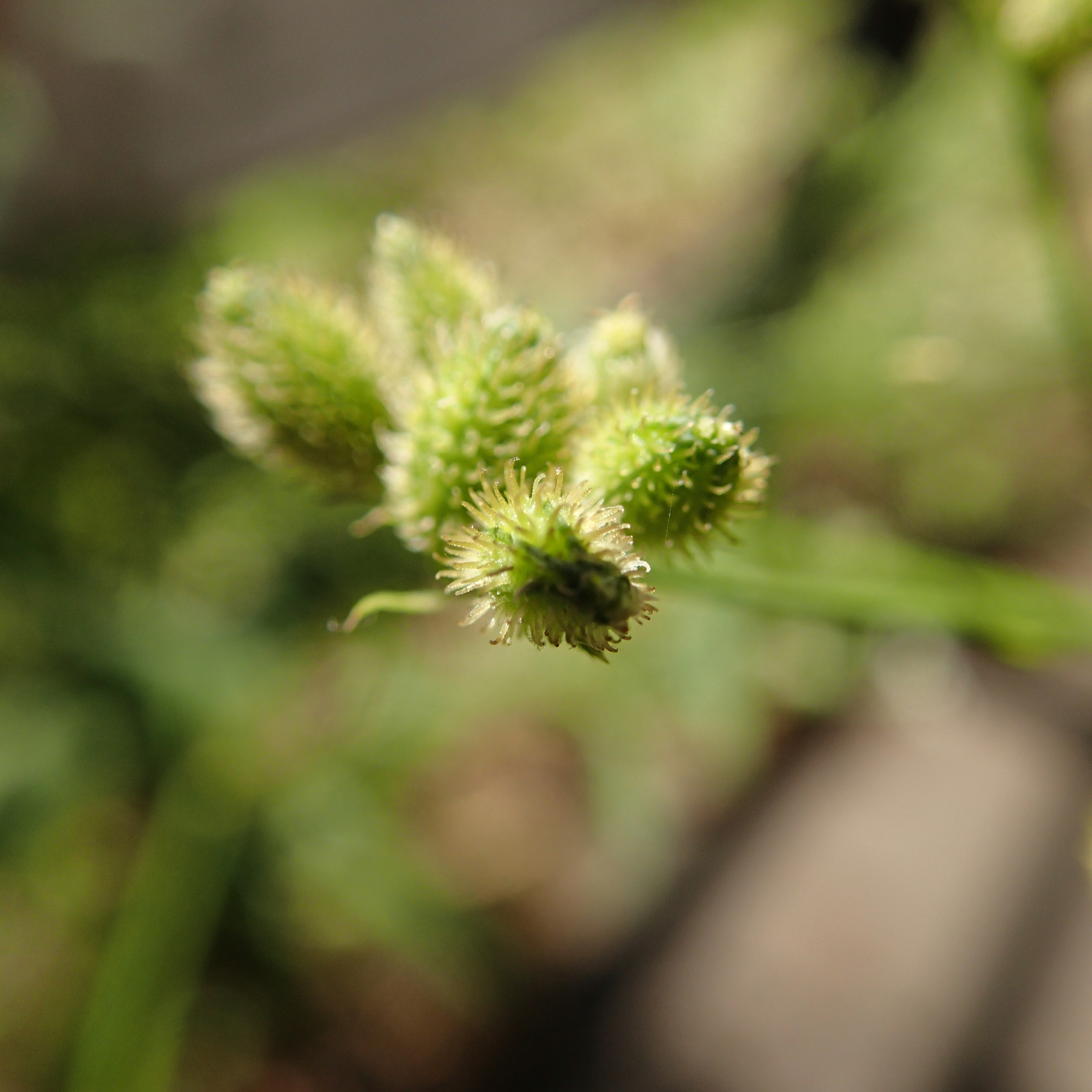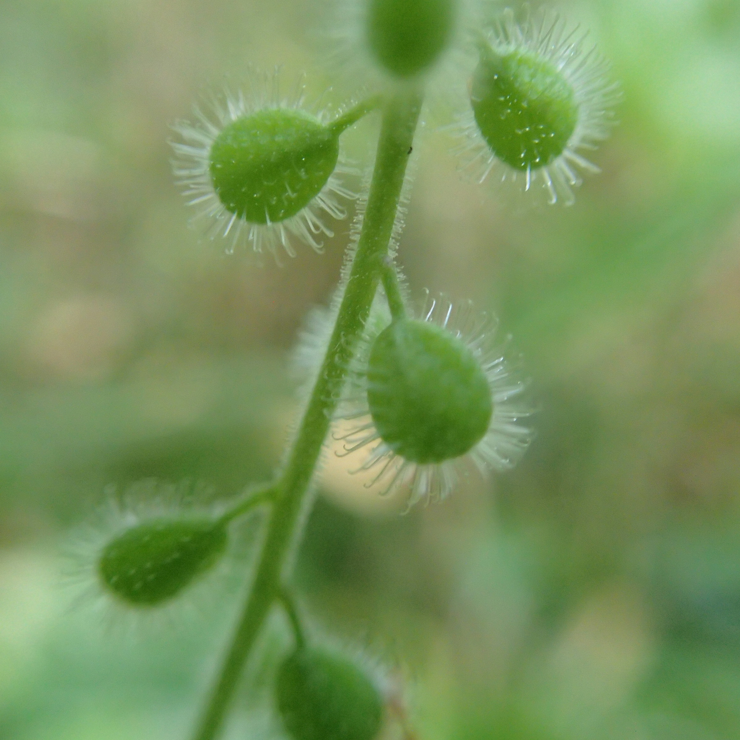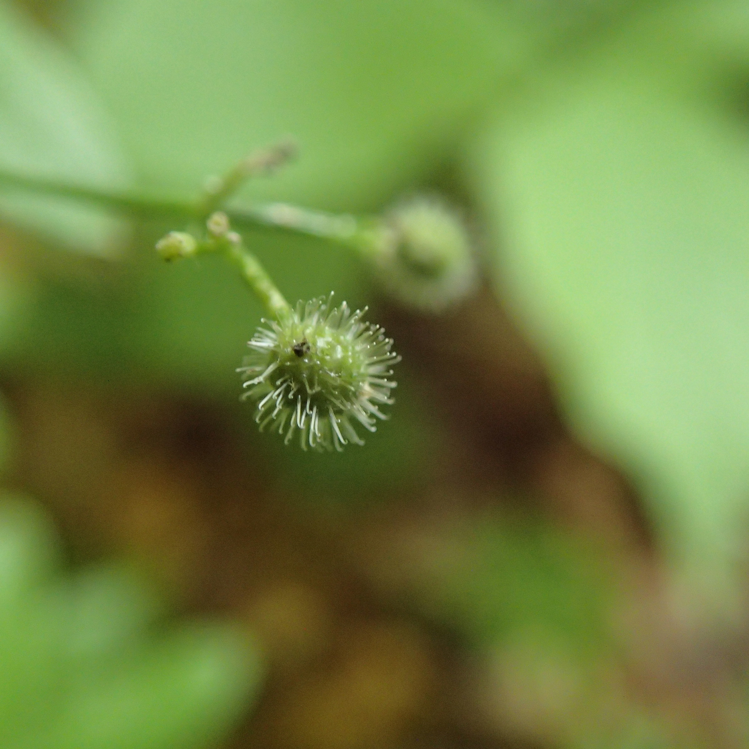 ウシタキソウの緑色の果実にも、細かなフック状の毛が生えていました。
