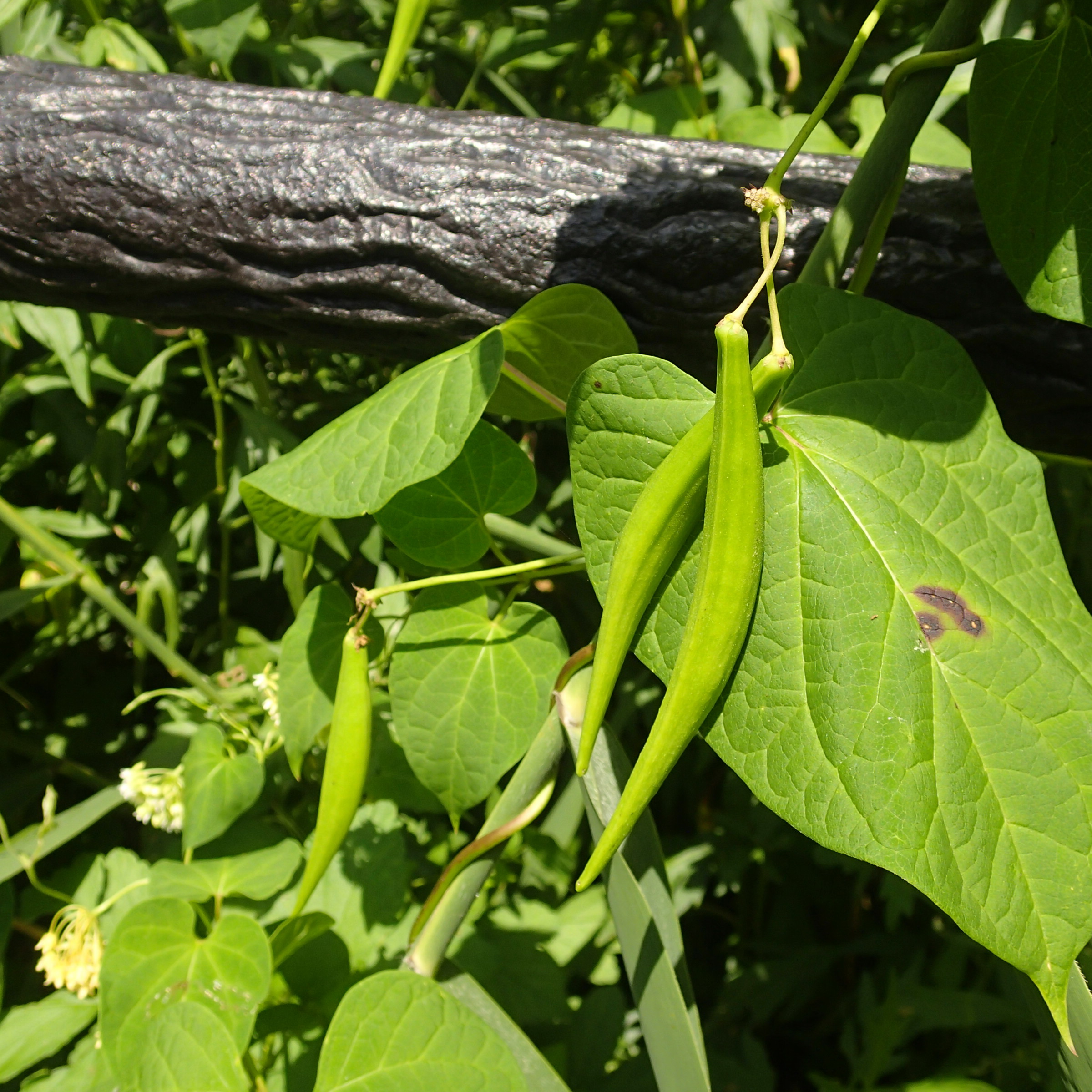 イケマの花の後には、緑色の長い鞘の果実が出来ていました。