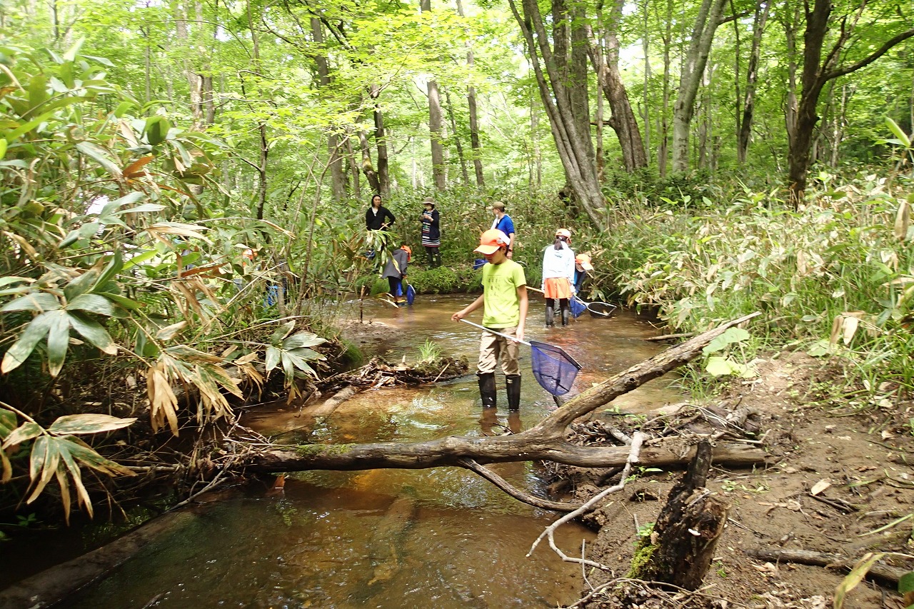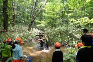 森の中に流れる川はいつもの開けた場所とは少し周りの環境が違います。
