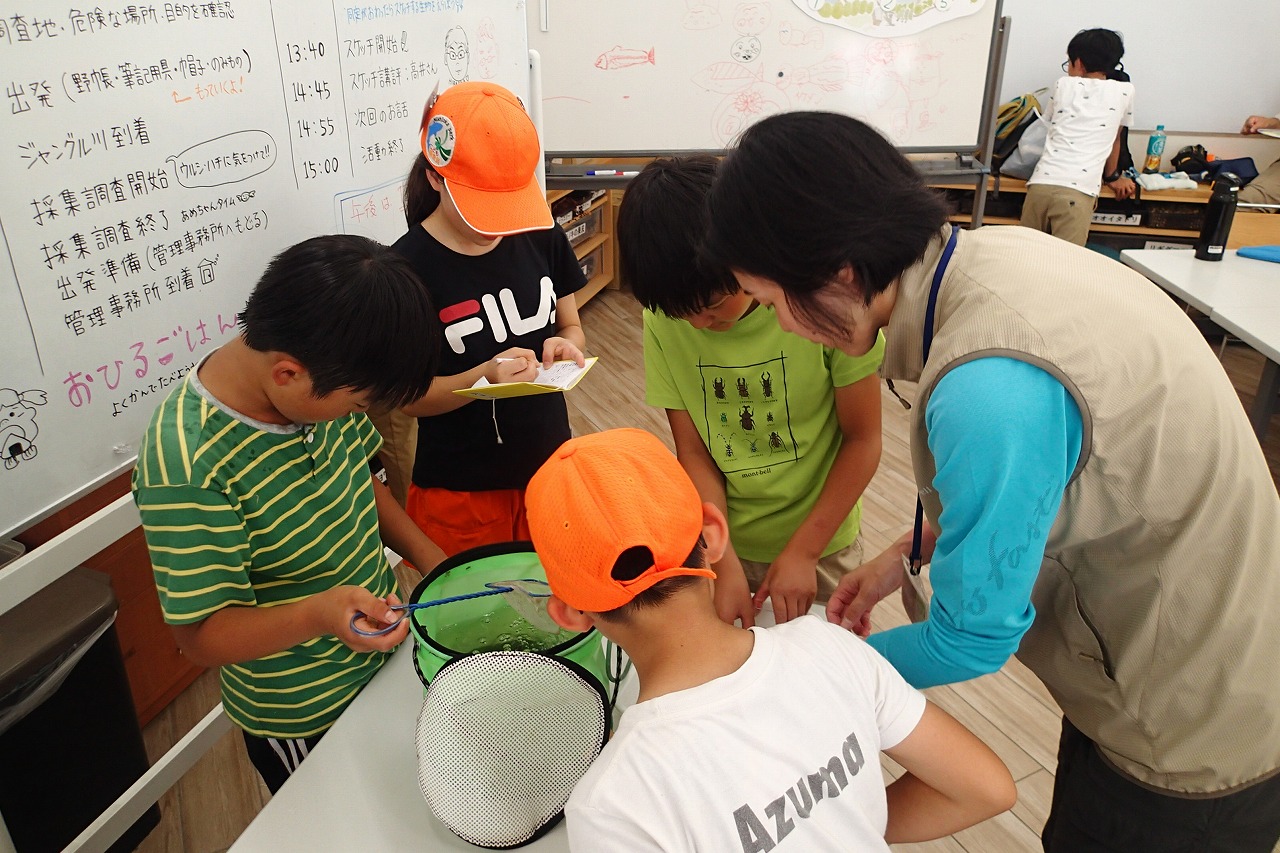 採取調査が終わったら、一度捕獲できた生き物を管理事務所に持っていき、