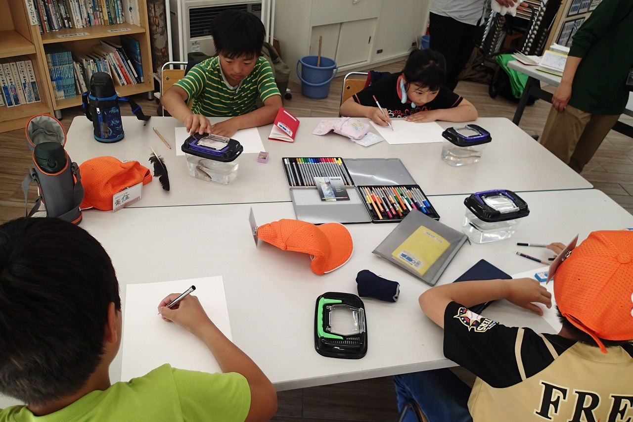 同定が済むと、隊員たちは今日採れたものから1種を選び「スケッチ」をします。