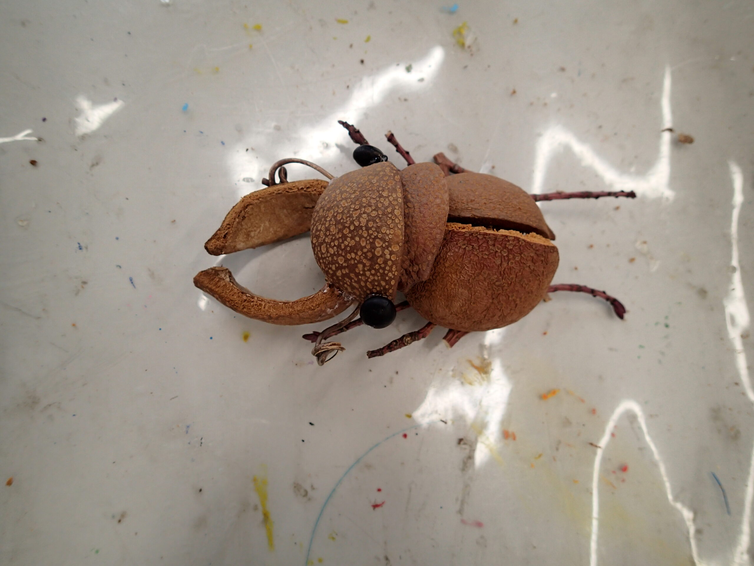 木の実を組み合わせて、クワガタが出来ましたよ。